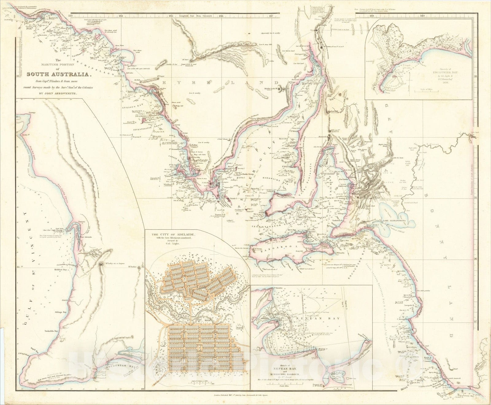 Historic Map : The Maritime Portion of South Australia, from Capt. Flinders & from more recent Sruveys made by the Survr. Genl. of the Colonies, 1840, Vintage Wall Art