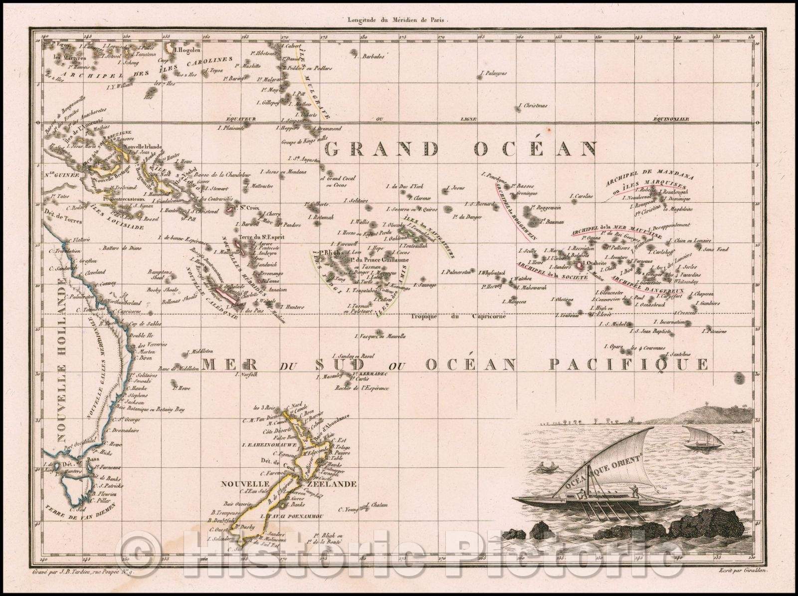 Historic Map - Oceanique Oriente. :: Eastern Pacific, Carolines and Eastern Australia and Tasmania to the Marquises, including all of New Zealand, 1812 - Vintage Wall Art