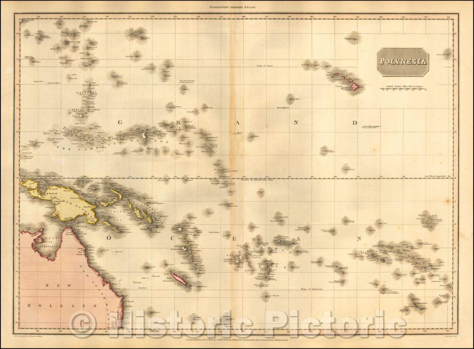 • .Historic Map - Polynesia (Hawaii to Australia), 1812, John Pinkerton - Vintage Wall Art