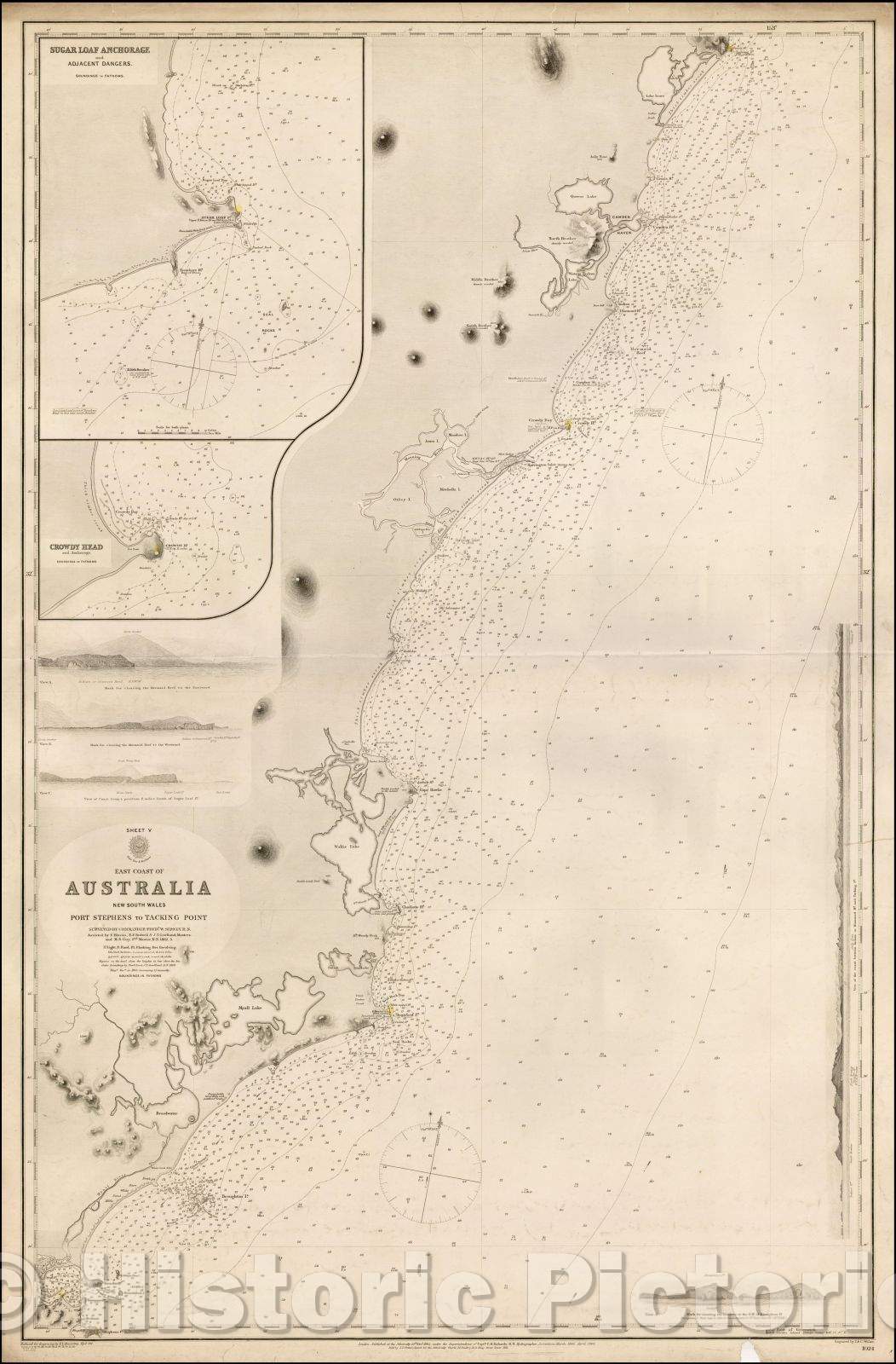Sheet V East Coast of Australia New South Wales Port Stephens to Tacking Point Surveyed , 1865, British Admiralty
