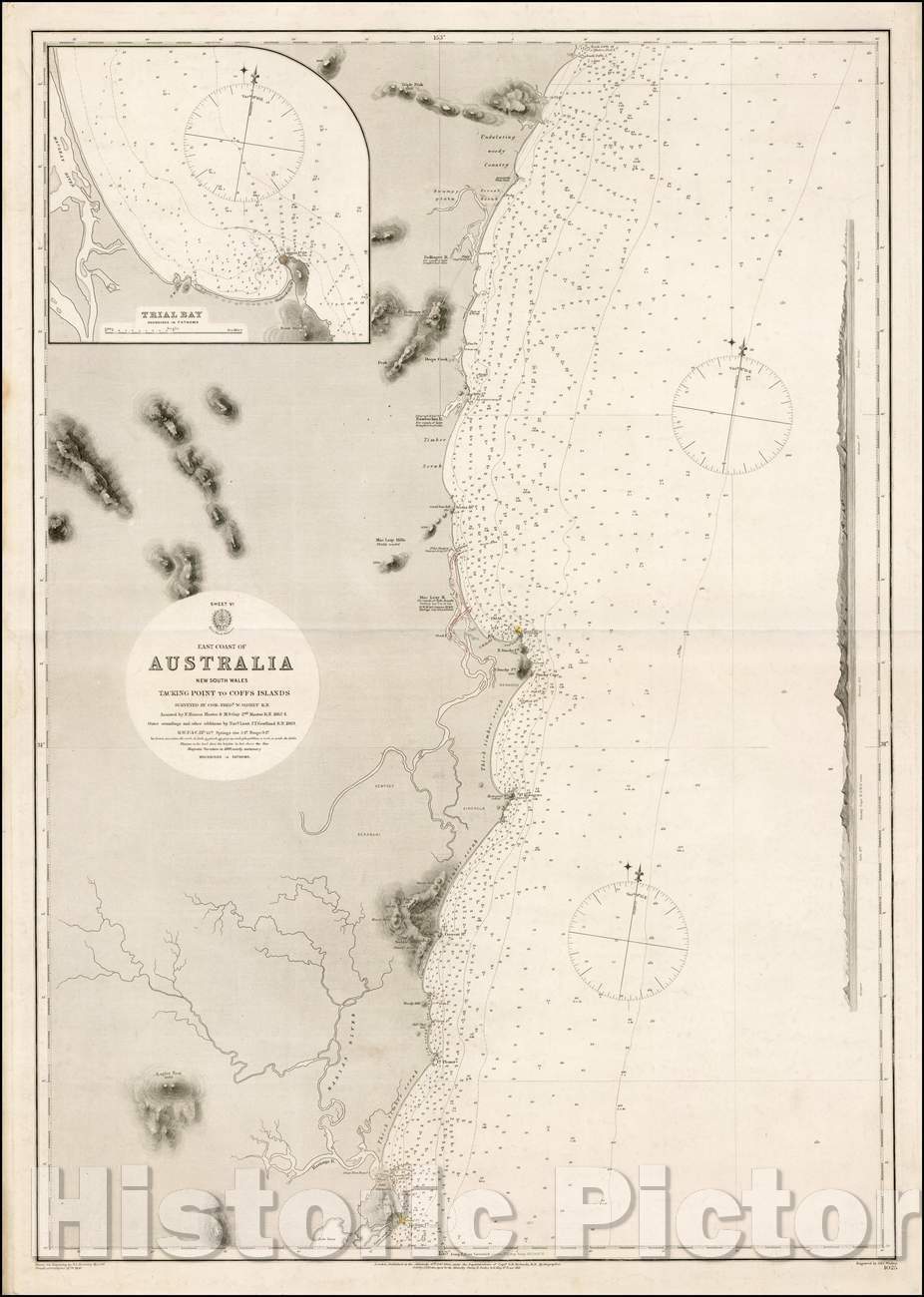 • .Historic Map - Sheet VI East Coast of Australia New South Wales Tacking Point to Coffs Islands, 1869, British Admiralty - Vintage Wall Art