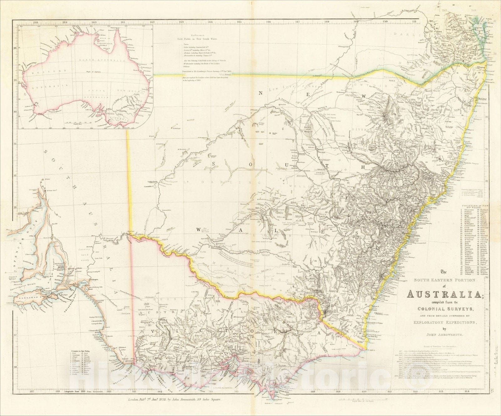 Historic Map : The South Eastern Portion of Australia, compiled from the Colonial Surveys, 1858, John Arrowsmith, Vintage Wall Art
