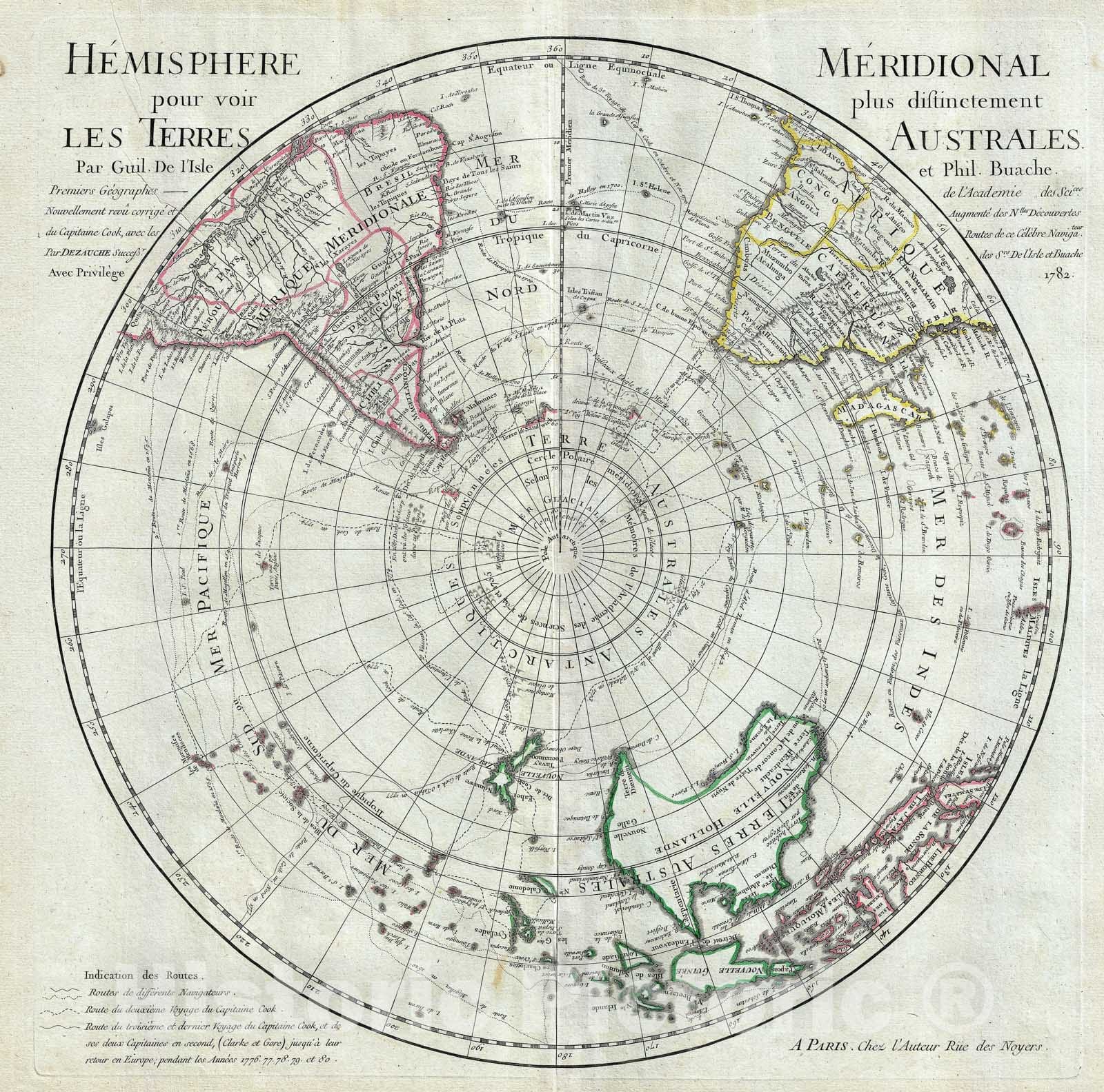 Historic Map : The Southern Hemisphere "Australia, South Pole", De L'Isle, 1782, Vintage Wall Art