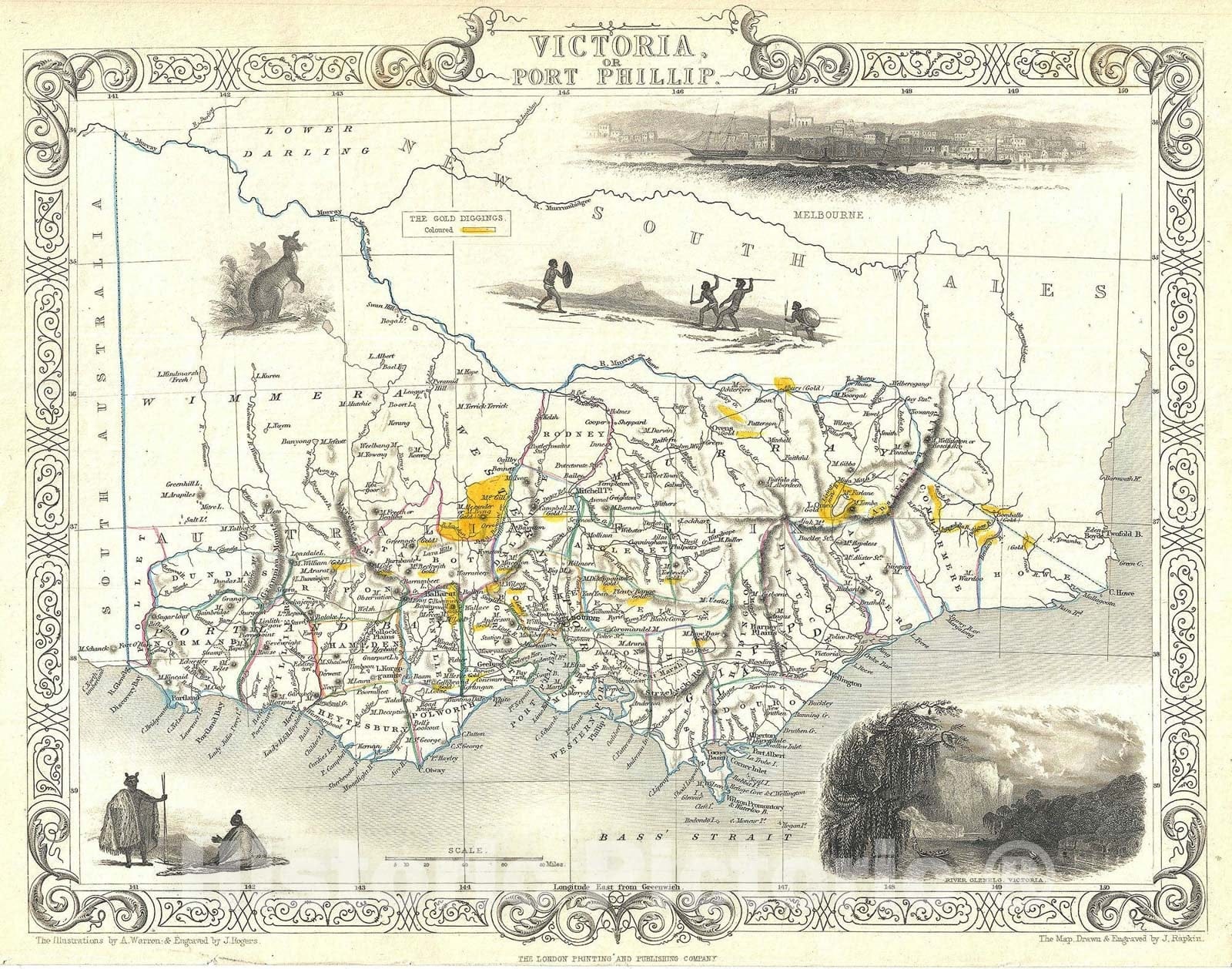 Historic Map : Victoria "with Gold Deposits", Australia, Tallis and Rapkin, 1851, Vintage Wall Art