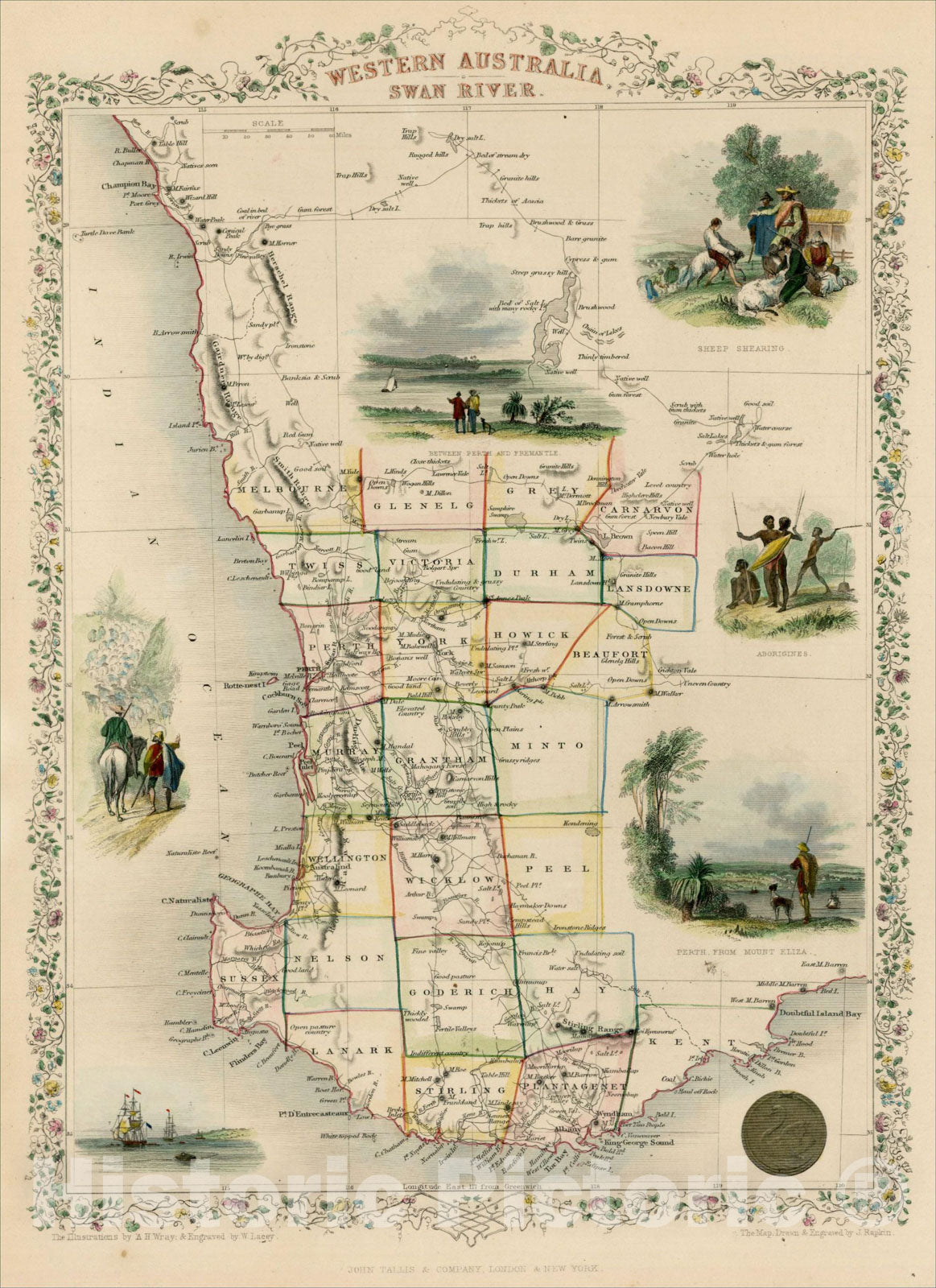 Western Australia, Swan River, 1851, John Tallis, v2, Vintage Wall Art :
