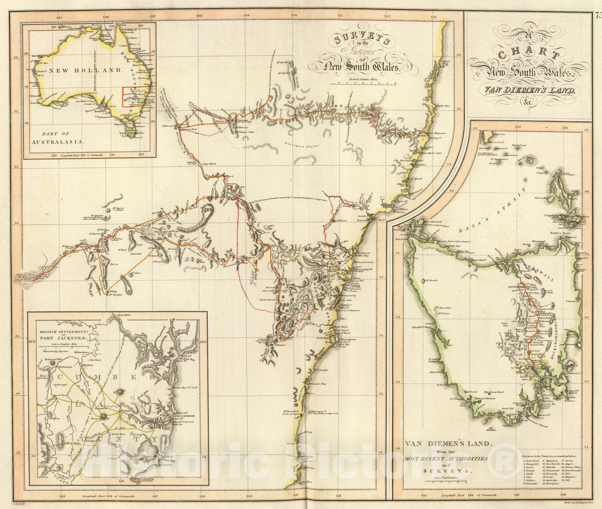 • .Historic Wall Map : Australia, New South Wales New S. Wales, Van Diemen's Land, 1821 Atlas , Vintage Wall Art