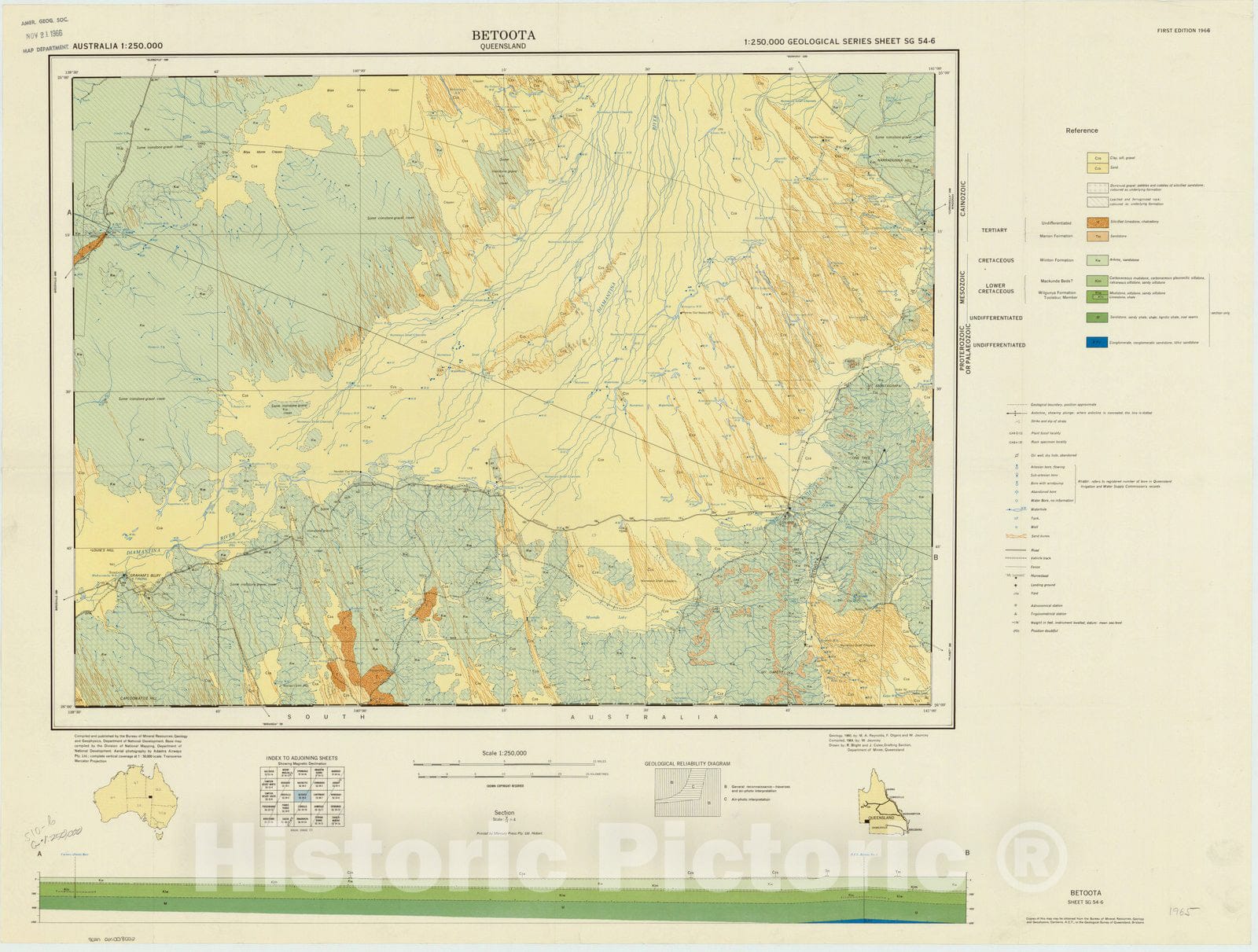 Map : Betoota, Queensland, Australia 1966, Australia 1:250,000 geological series , Antique Vintage Reproduction