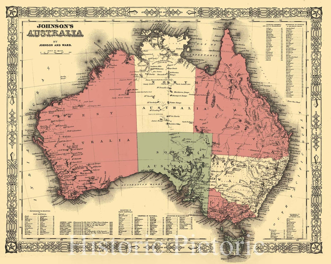 Historic Map : 1864 Johnson's Australia : Vintage Wall Art