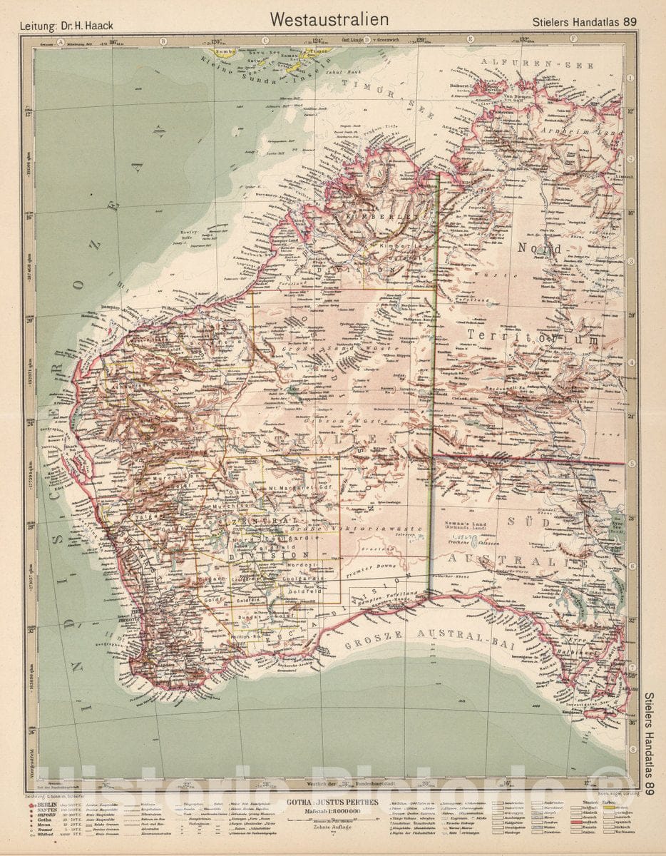 Historic Map : Australia, 89. Westaustralien. Western Australia, 1925 Atlas , Vintage Wall Art