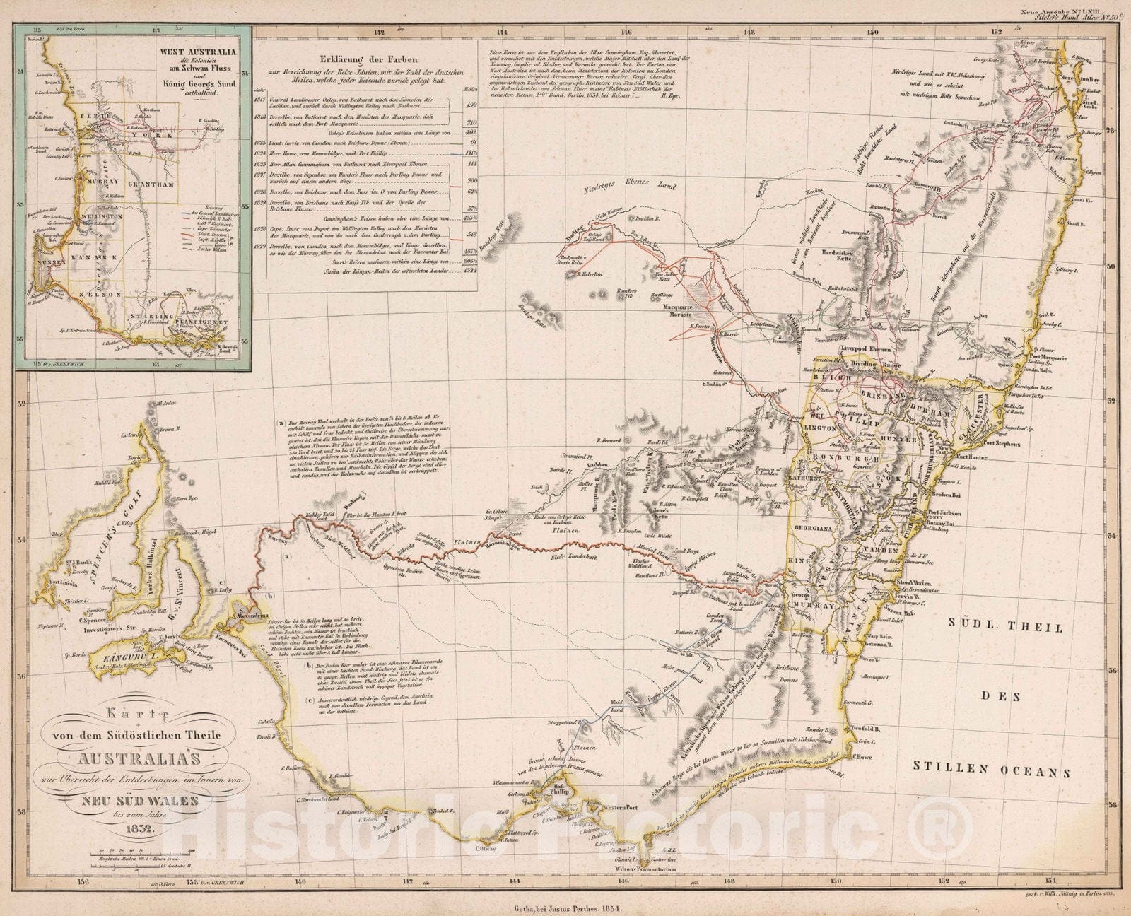 Historic Map : Australia, New South Wales 1834 Karte von dem Sudostlichen theile Austalia , Vintage Wall Art