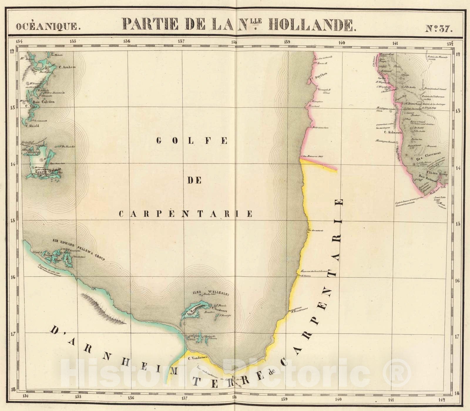 Historic Map : Australia, Northern Territory 1827 Partie, Nlle. Hollande. Oceanique no. 37. , Vintage Wall Art