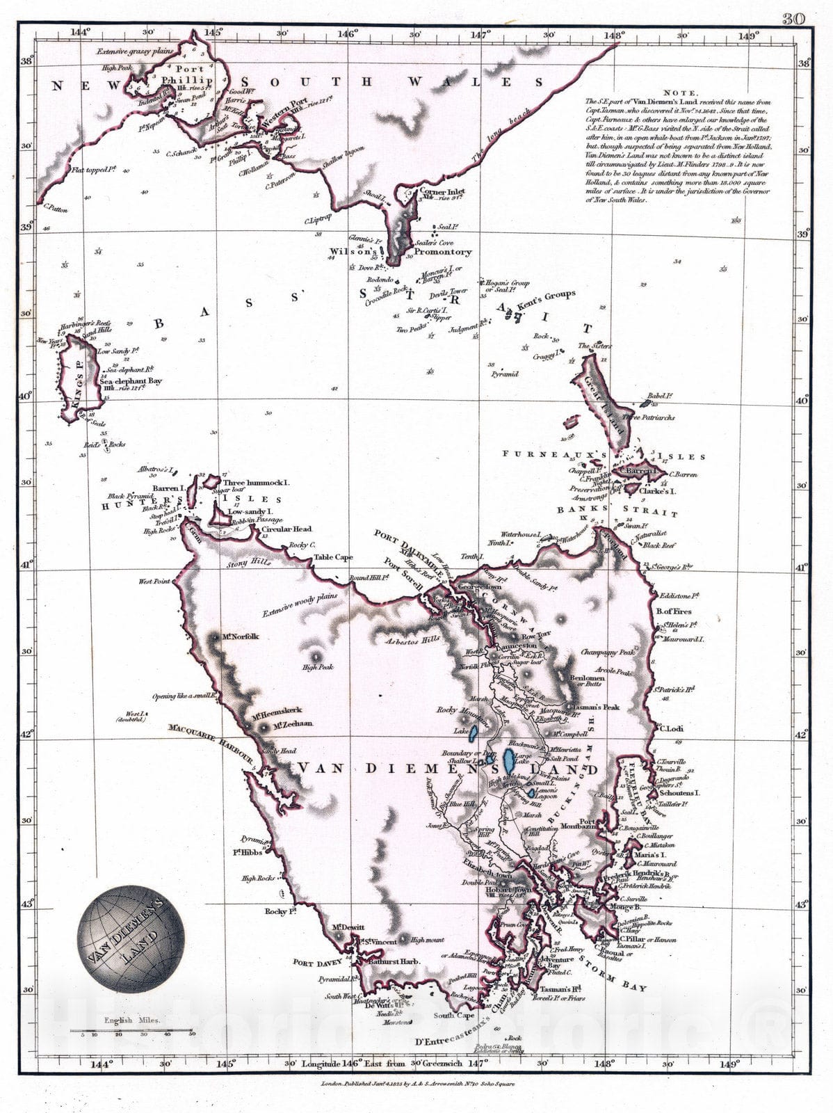 Australia, Tasmania Island 1825 Van Diemen's Land , Vintage Wall Art