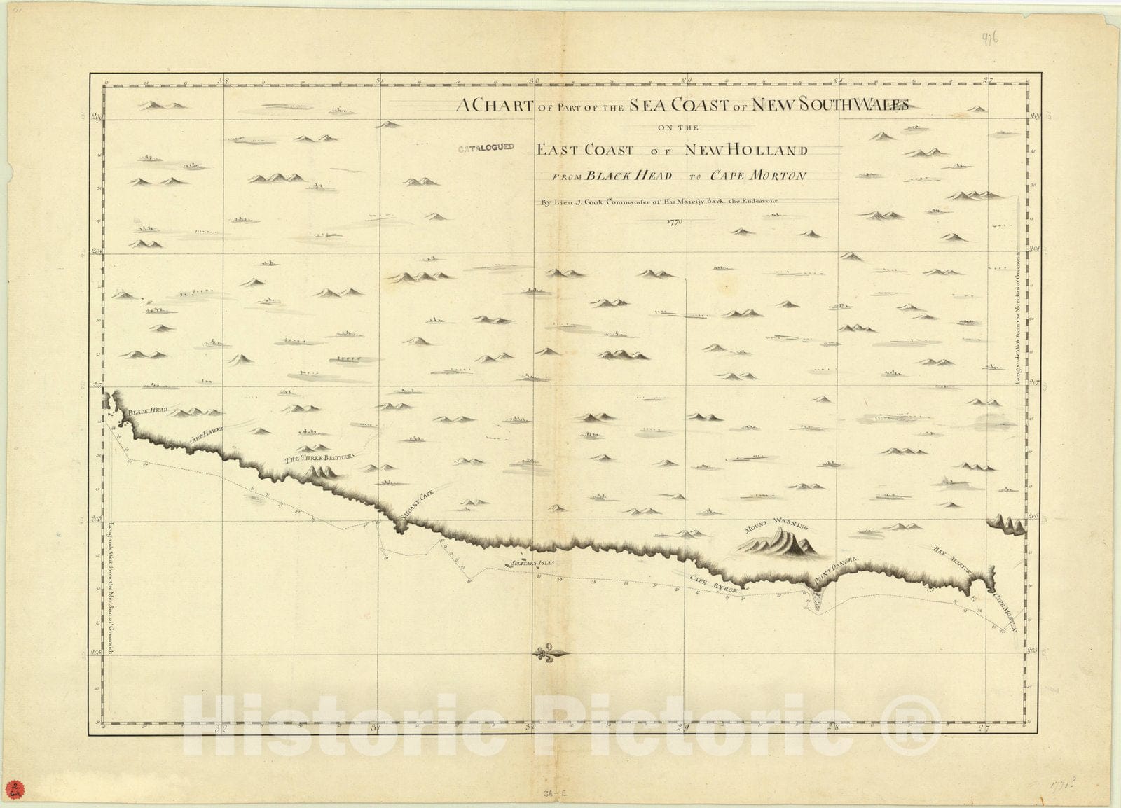 • .Map : Southeast coast of Australia 1771, A Chart of part of the sea coast of New South Wales on the east coast of New Holland from Black Head to Cape Morton