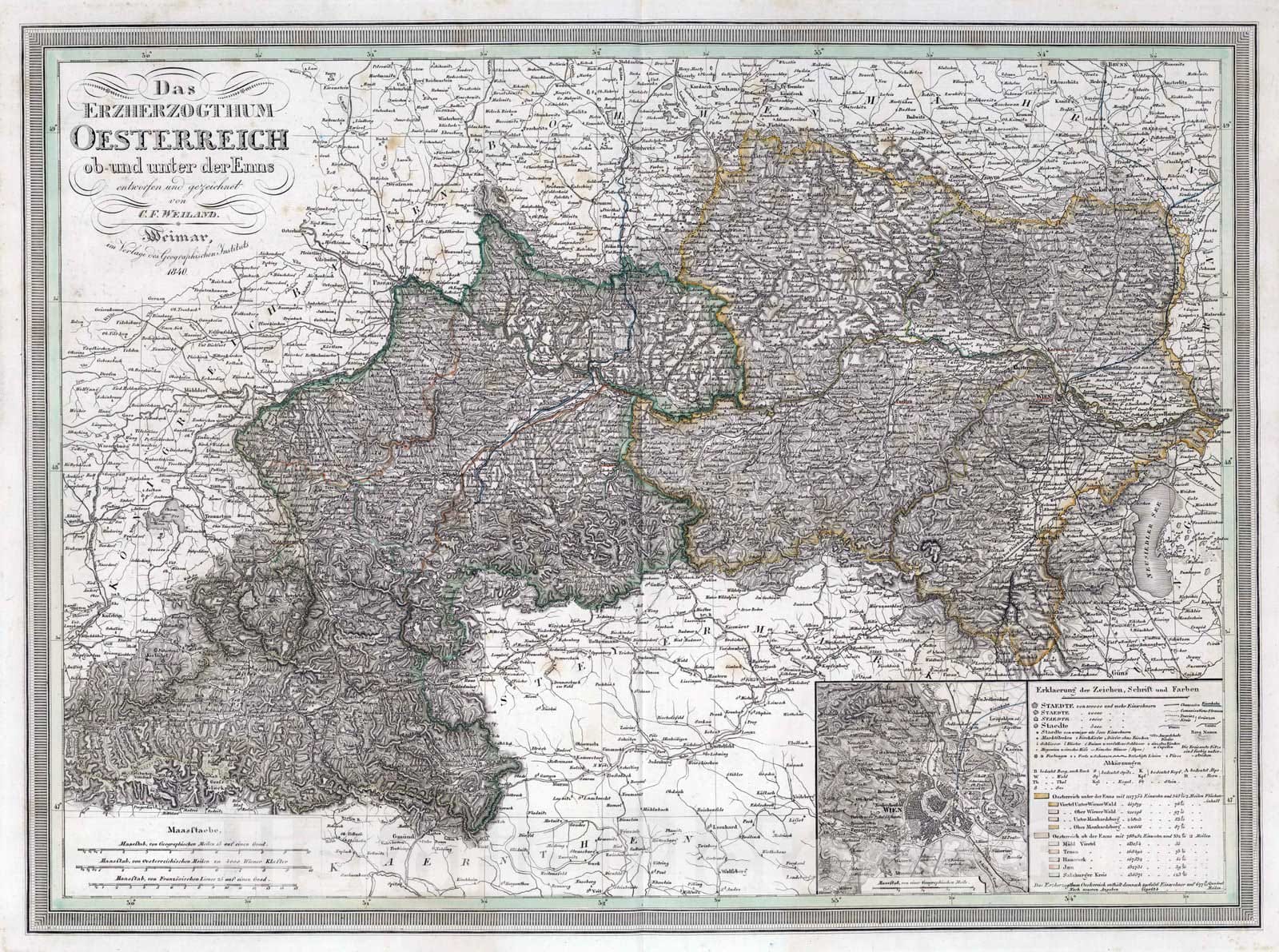 1840 Das Erzherzogthum Oesterreich. Archduchy of Austrian above and below the Enns River.