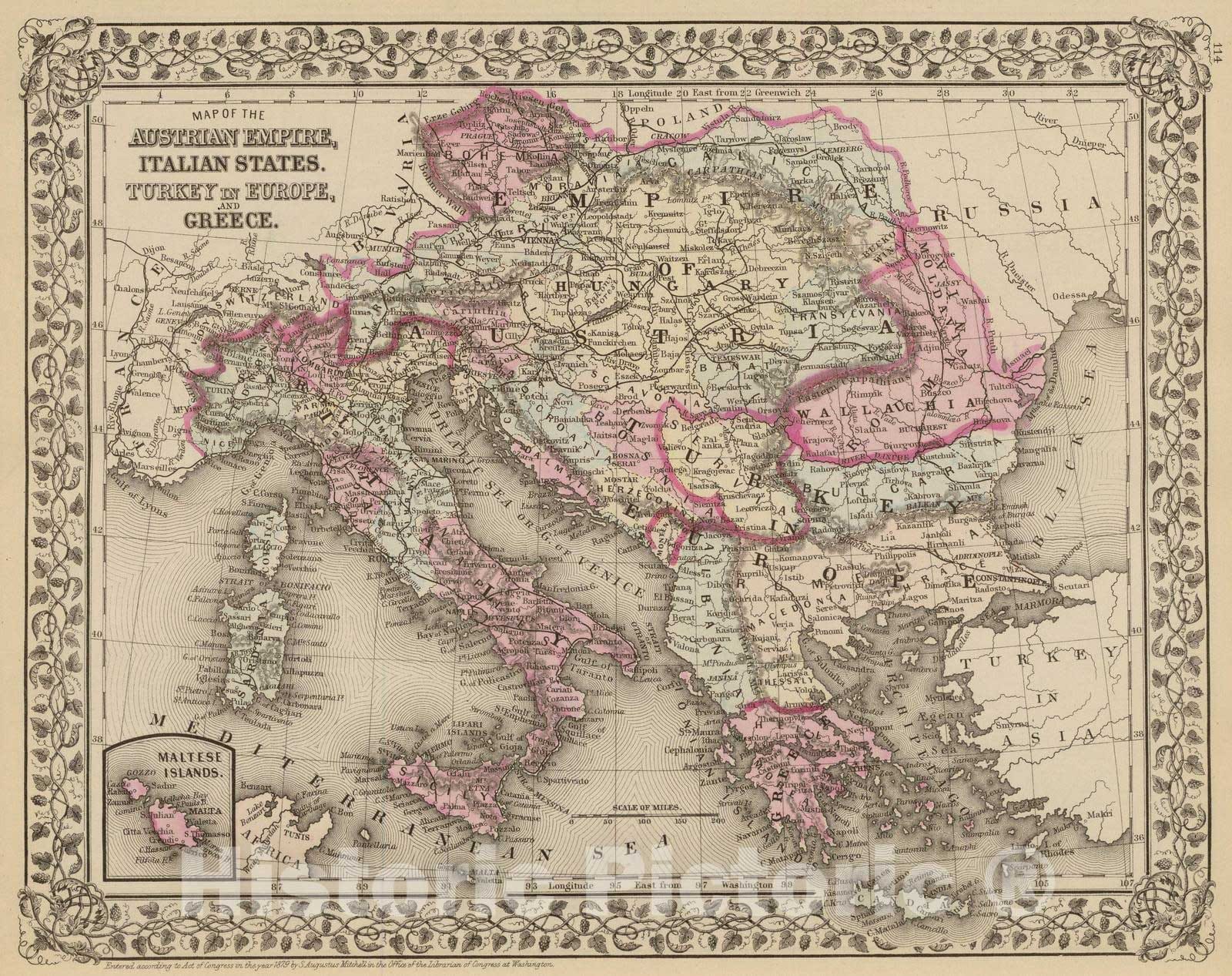 Historic Map : 1880 Austrian Empire, Italy, Turkey in Europe, Greece. - Vintage Wall Art