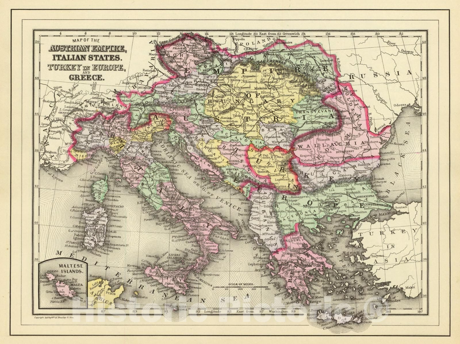 Historic Map - 1890 Austrian Empire, Italy, Turkey in Europe, Greece. - Vintage Wall Art