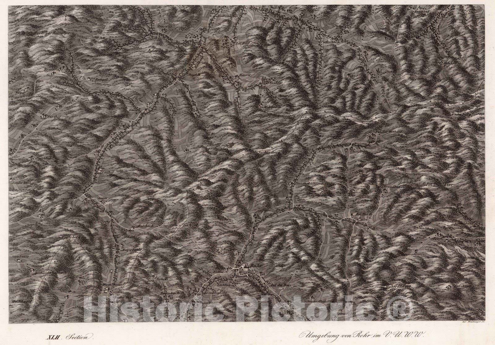 Historic Map : Austria, 1837 XLII Section. Umgebung von Rohr im V.U.W.W. Lor. Neumayer sc. , Vintage Wall Art