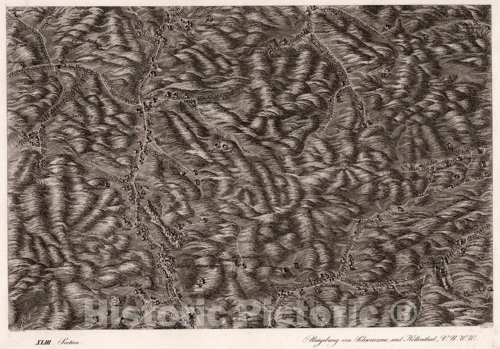 Historic Map : Austria, 1837 XLIII Section. Umgebung von Schwarzau und Hollenthall, V.U.W.W. Hollnsteiner del. F. Mehl sc. , Vintage Wall Art