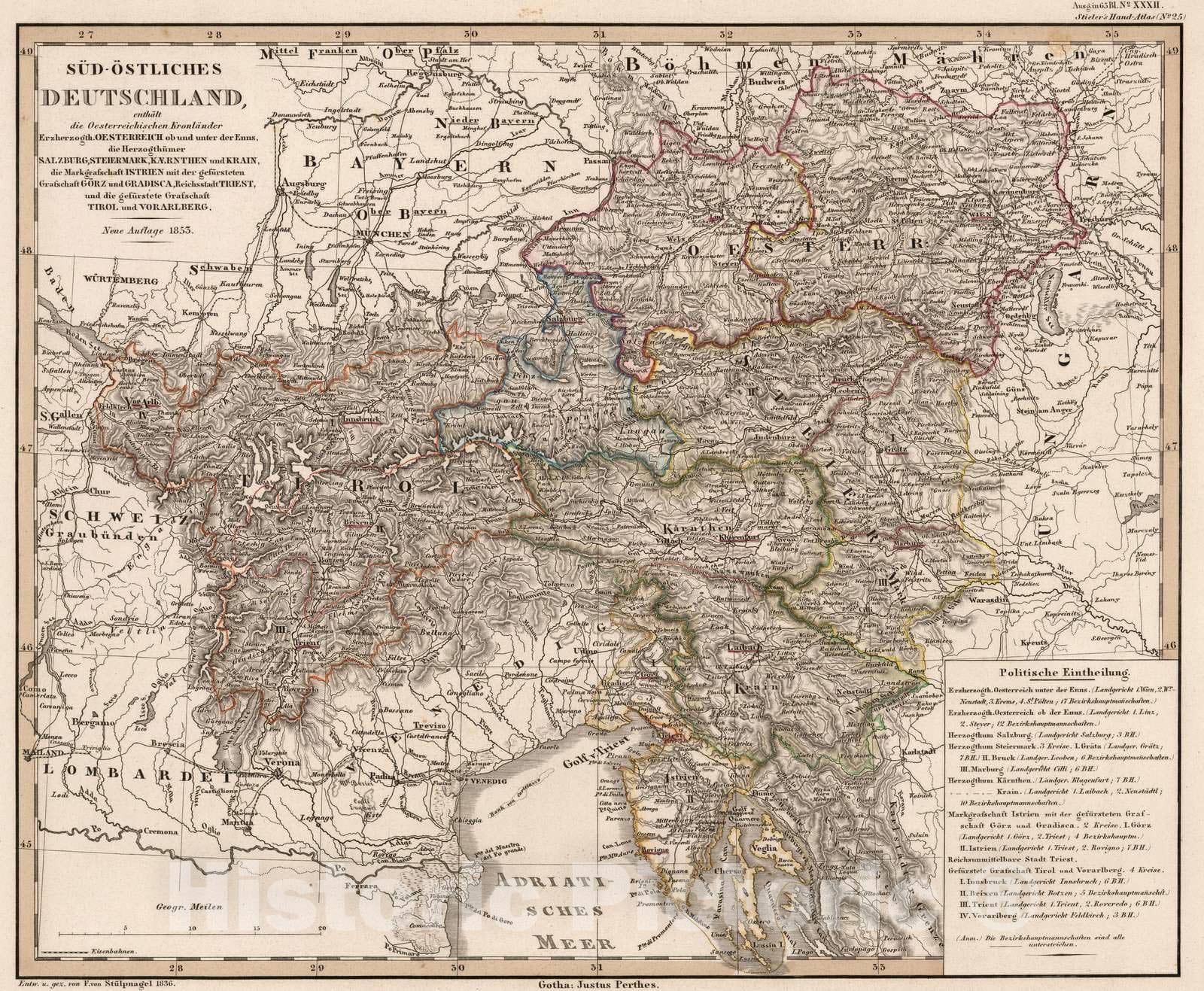 Historic Map : Austria, 1853 Sud-Ostliches Deutschland (Southeast Germany). , Vintage Wall Art