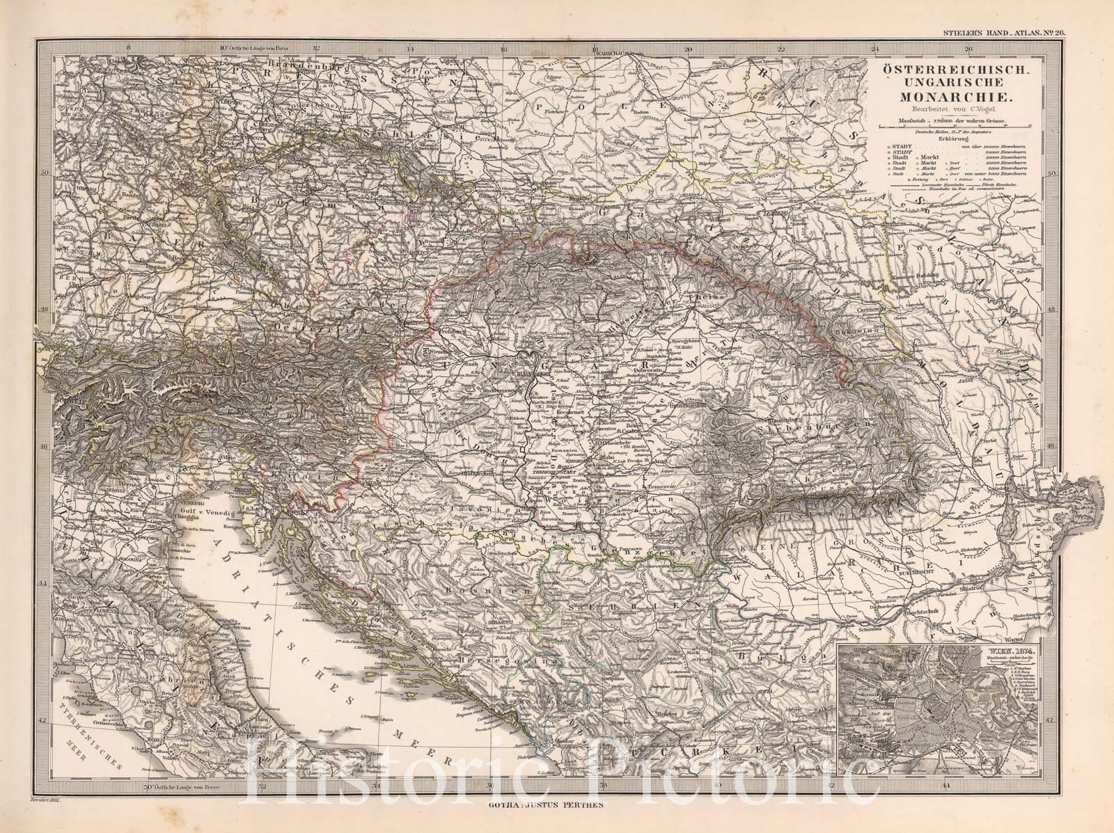 Historic Map : Austria, 1881 Der Osterreichisch Ungarische Monarchie. (Austro Hungarian Empire). , Vintage Wall Art