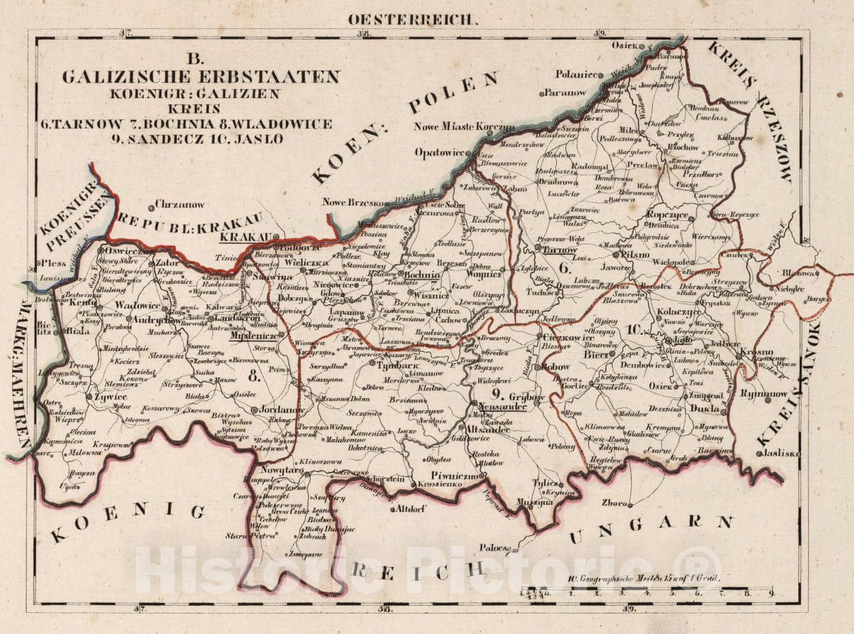 Historic Map : Austria, V.3:11-15:XI:1.Oesterreich. A. Deutsche Erbstaaten. VIII. Markgrafsch: Maehren Oest: Schlesien Kreis, 1828 Atlas , Vintage Wall Art