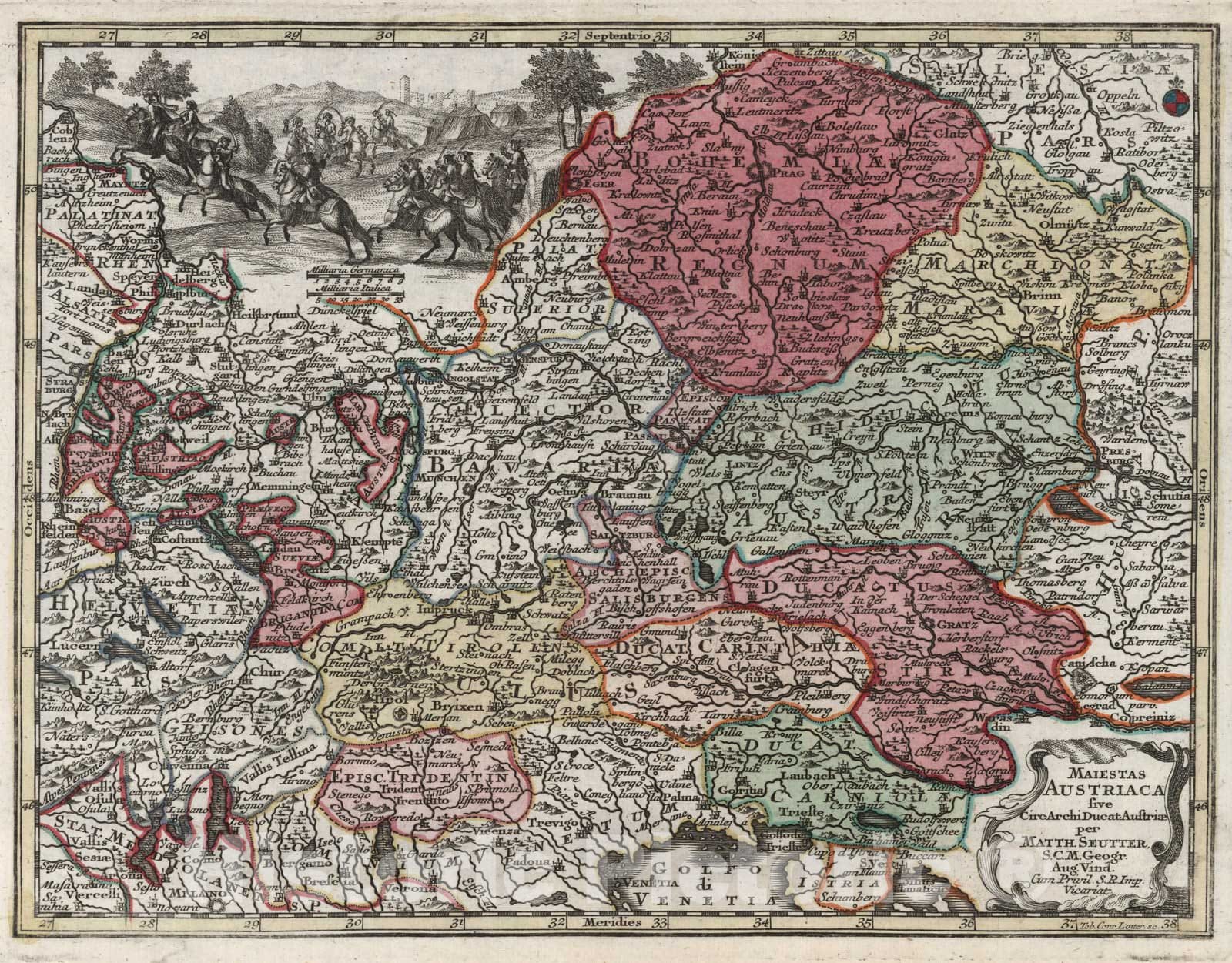 Historic Map : Austria,Maiestas Austriaca sive Circul. Archi-Ducat. Austriae 1744 , Vintage Wall Art