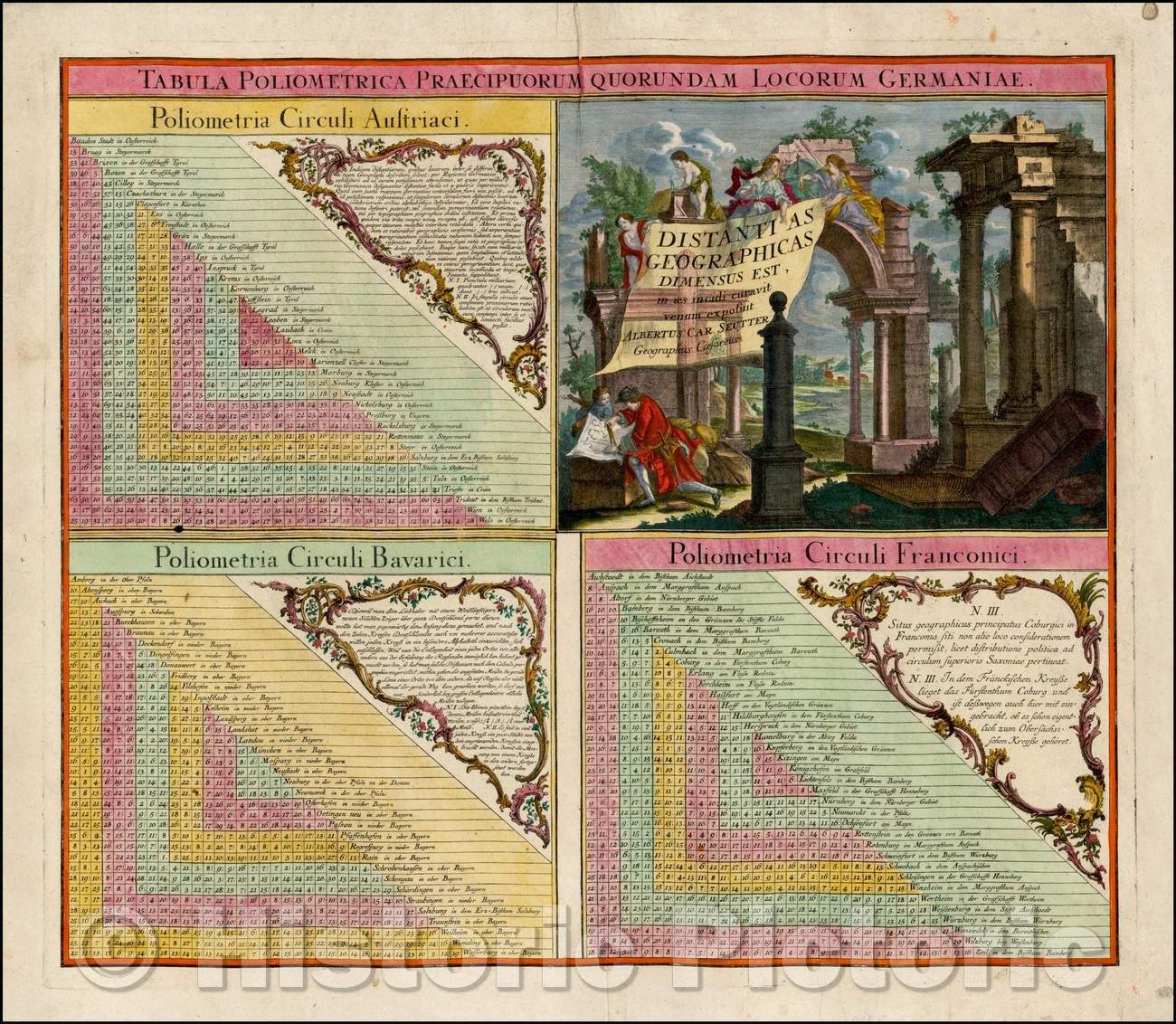 Historic Map - [Germany & Austria - Distance Tables] Tabula Polimetrica Praecipuorum Quor, 1760 - Vintage Wall Art