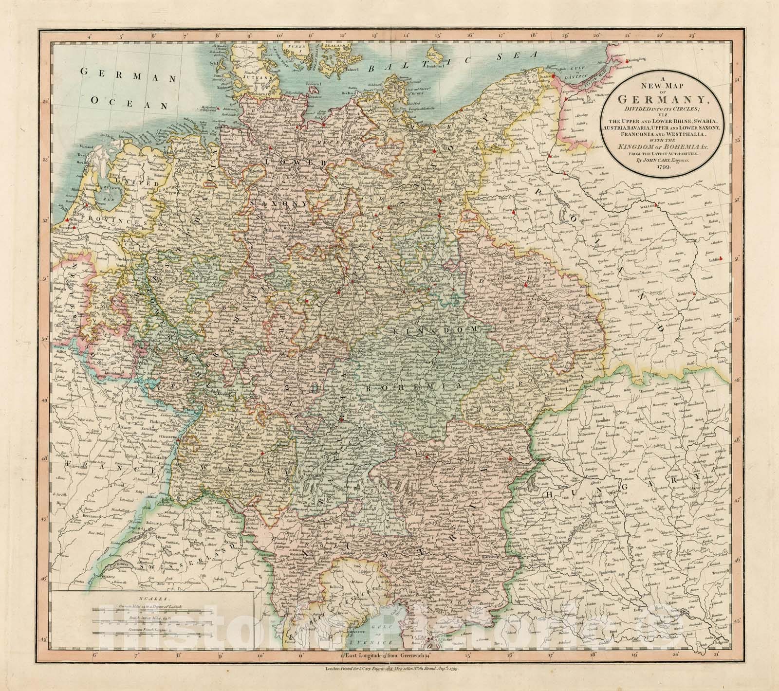 Germany, Divided Into Its Circles; viz. The Upper and Lower Rhine, Sabia, Austria, Bavaria, Upper and Lower Saxony, 1799, John Cary