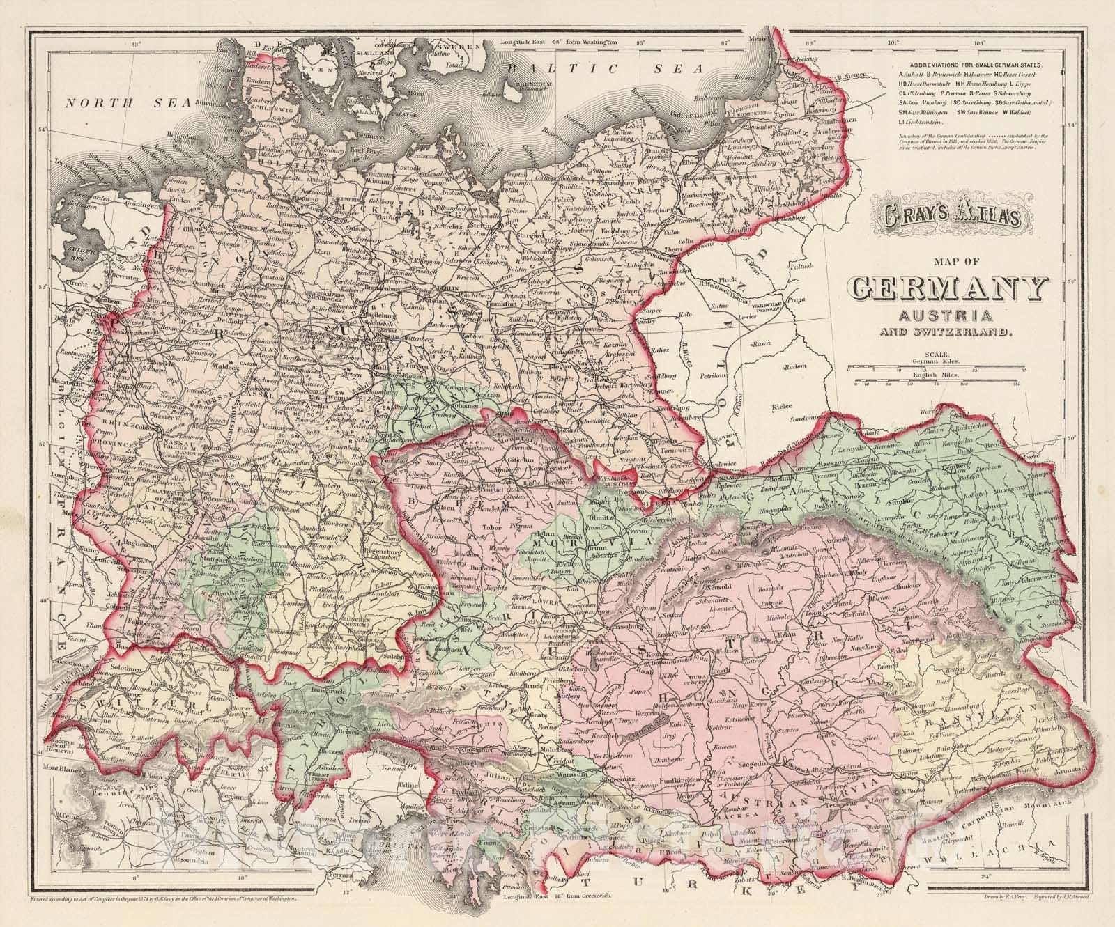Historic Map - World Atlas - 1874 Germany, Austria, and Switzerland.
