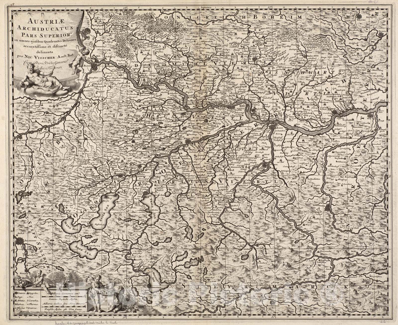 Historical Map, 1698 Austriae archiducatus pars superior in omnes ejusdem quadrantes ditiones accuratissime et distincte delineata, Vintage Wall Art