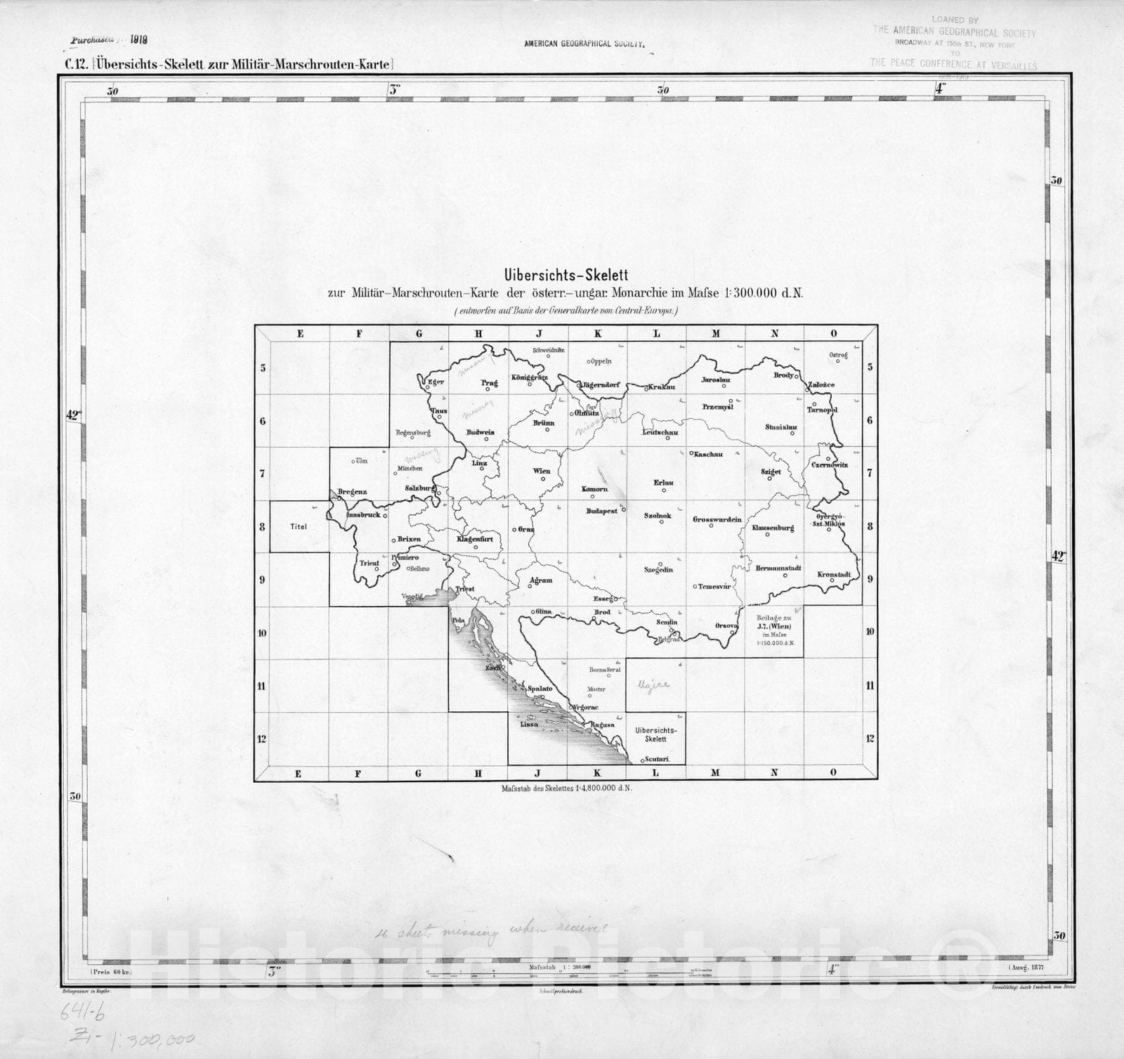 Map : Austria and Hungary 1877 1, Militar-Marschroutenkarte der osterreichisch-ungarischen Monarchie , Antique Vintage Reproduction