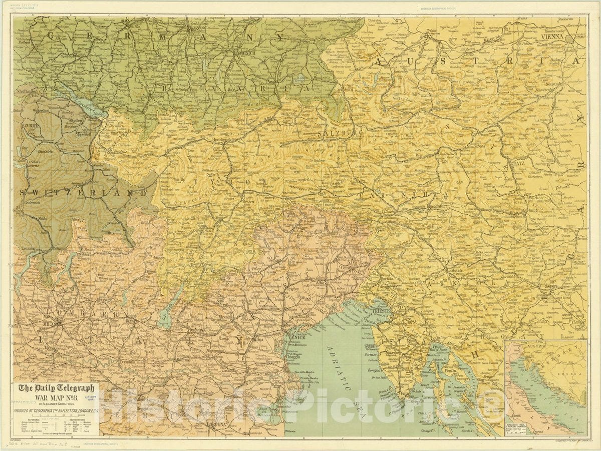The Daily telegraph war map no. 8 [showing on a large scale the Italian and Austro-German fighting areas] / by Alexander Gross; produced by |"Geographia|" Ltd.