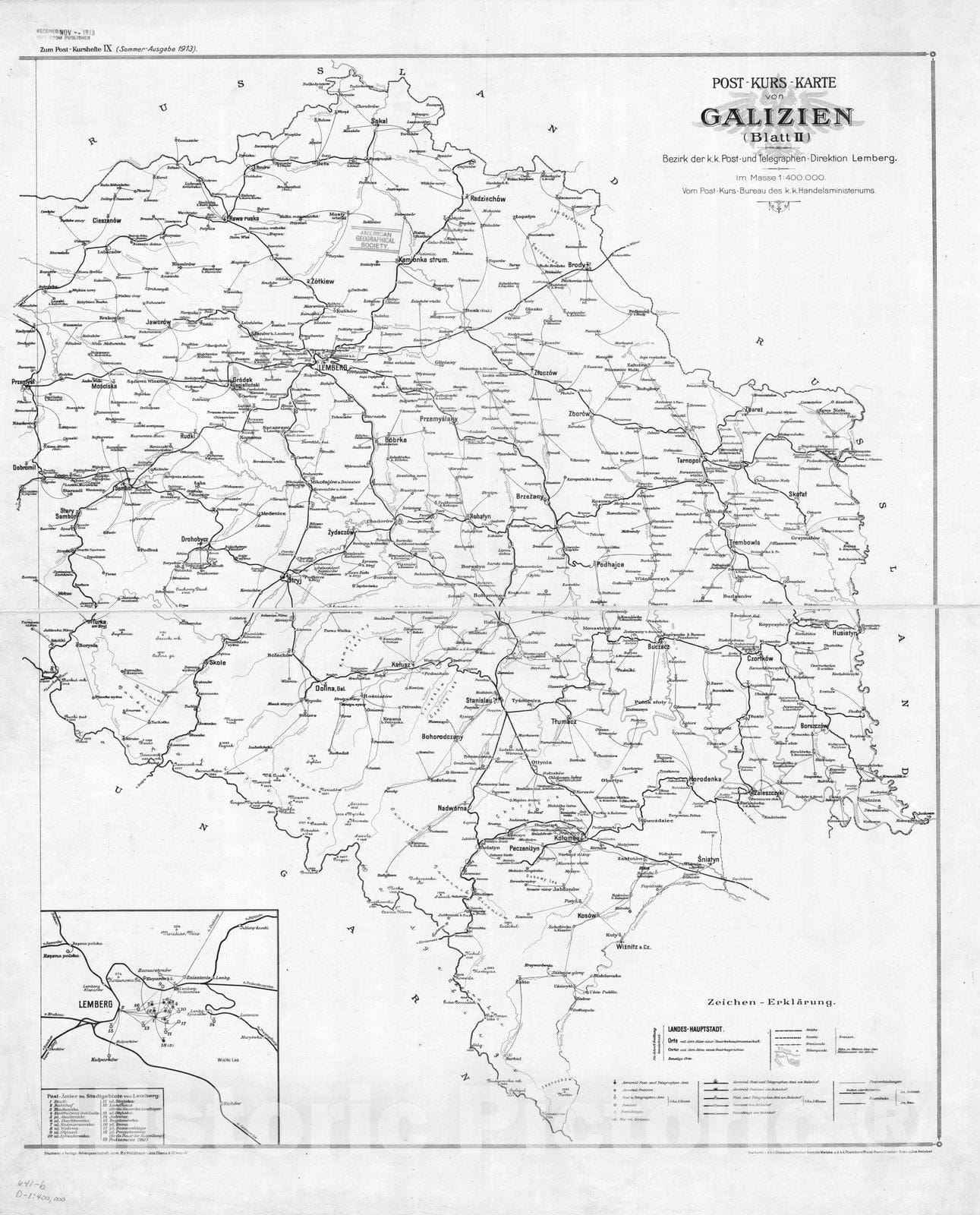 Map : Austria and Switzerland 1913 4, Post-Kurs Karte von Oesterreich unter der Enns , Antique Vintage Reproduction