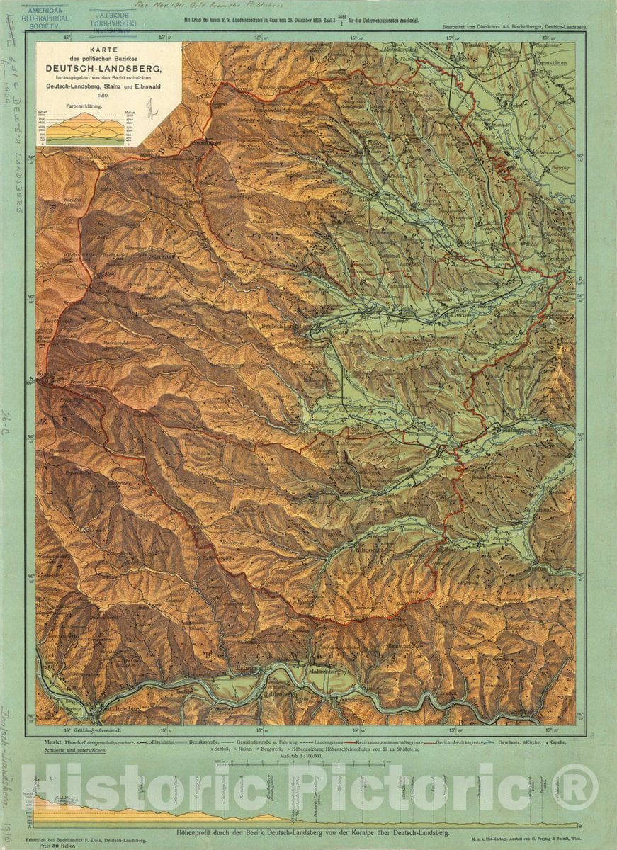 Map : Deutschlandsberg, Austria 1910, Karte des politischen Bezirkes Deutsch-Landsberg , Antique Vintage Reproduction
