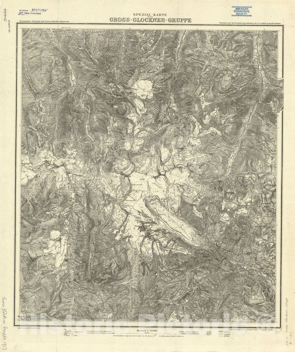 Map : Grossglockner, Austria 1913, Spezial-Karte der Gross-Glockner-Gruppe , Antique Vintage Reproduction