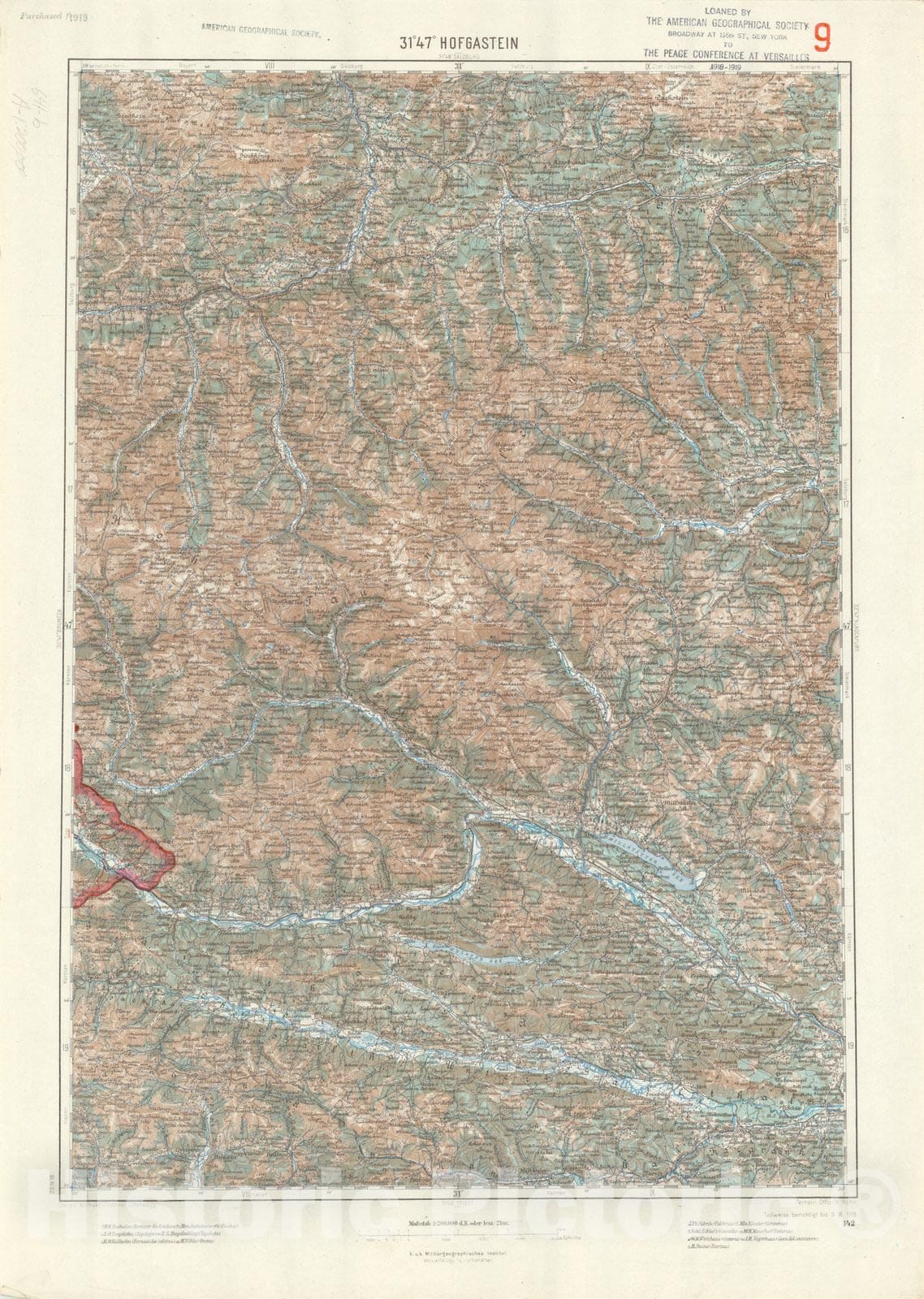 Map : Hofgastein, Austria 1915, Generalkarte von Mitteleuropa, Antique Vintage Reproduction