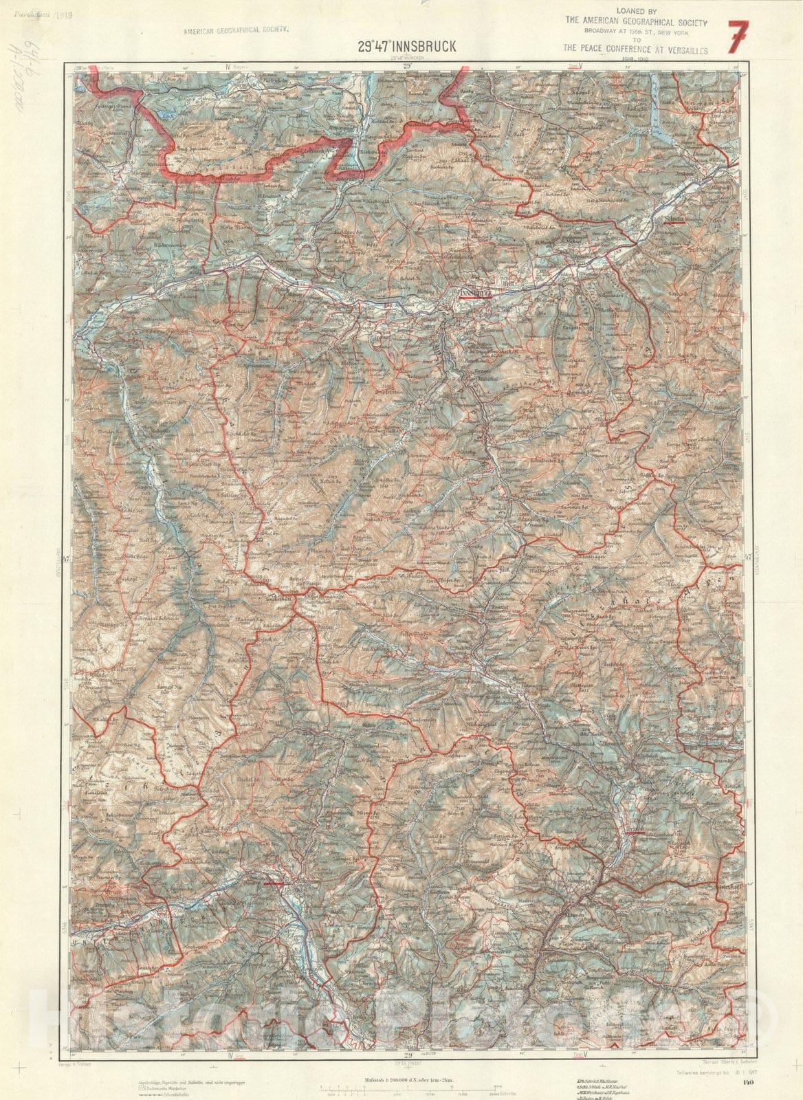 Map : Innsbruck, Austria 1917, Generalkarte von Mitteleuropa, Antique Vintage Reproduction