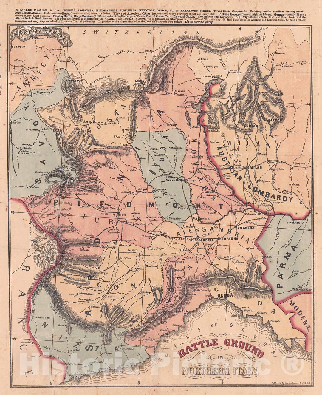 Historic Map : 1859 Map of the Austrian, French, and Italian War Territory - Battle Ground in Northern Italy : Vintage Wall Art
