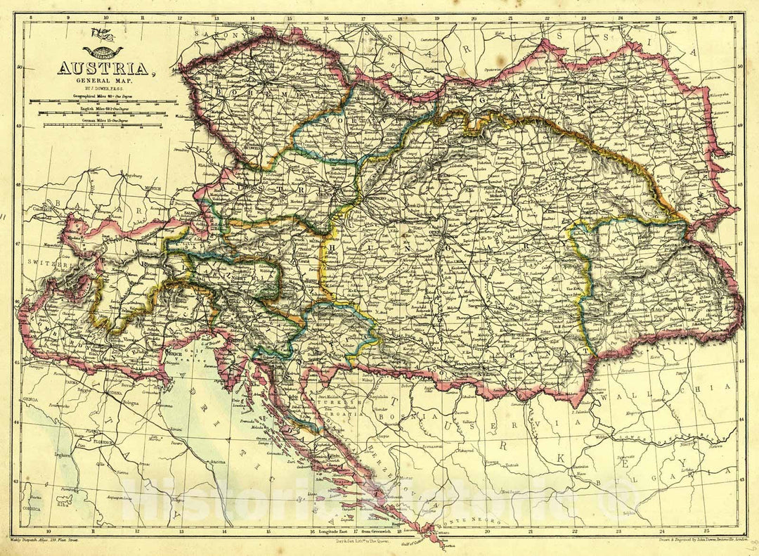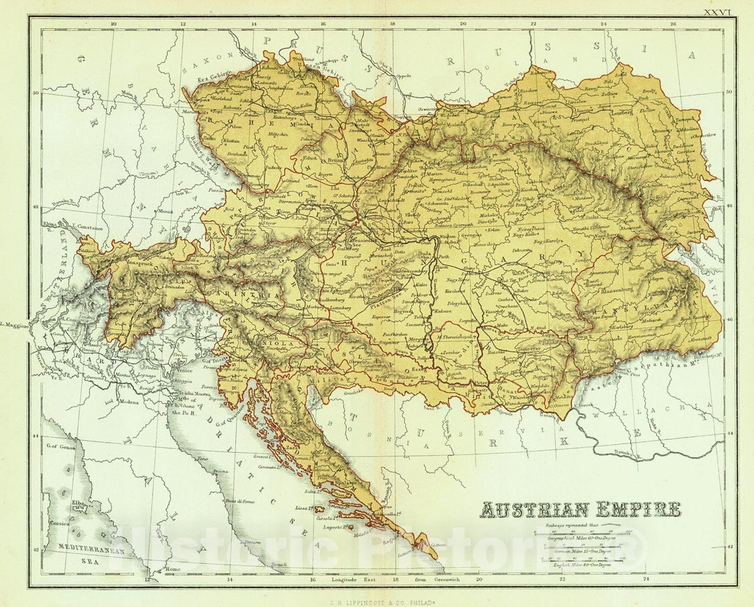 Historic Map : 1864 Map of the Austrian Empire, Italian States, Turkey in Europe and Greece : Vintage Wall Art