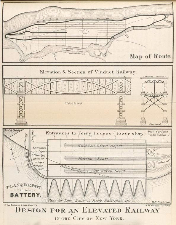 Art Print : 1867, Design for an Elevated Railway in The City of New York. - Vintage Wall Art