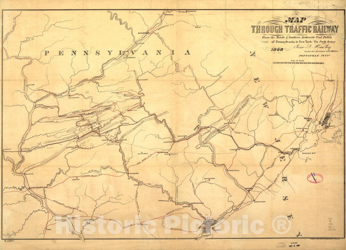 Historic 1868 Map - Map of Through Traffic Railway from The Middle & Southern Anthracite Coal Fields of Pennsylvania to New York via Perth Amboy