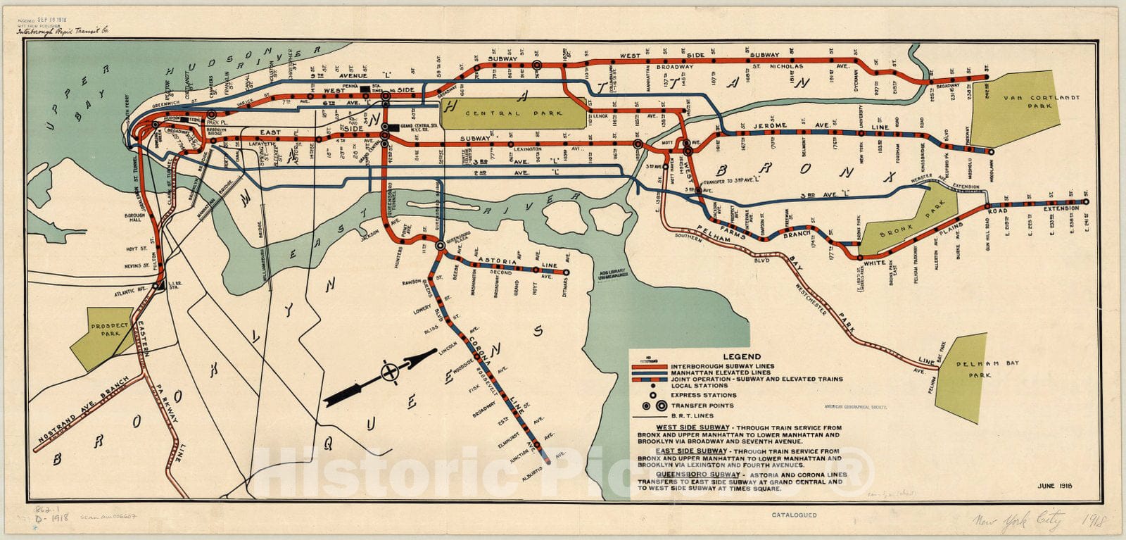 Map : New York City, New York 1918, [Routes of the Interborough Rapid Transit Company.], Antique Vintage Reproduction