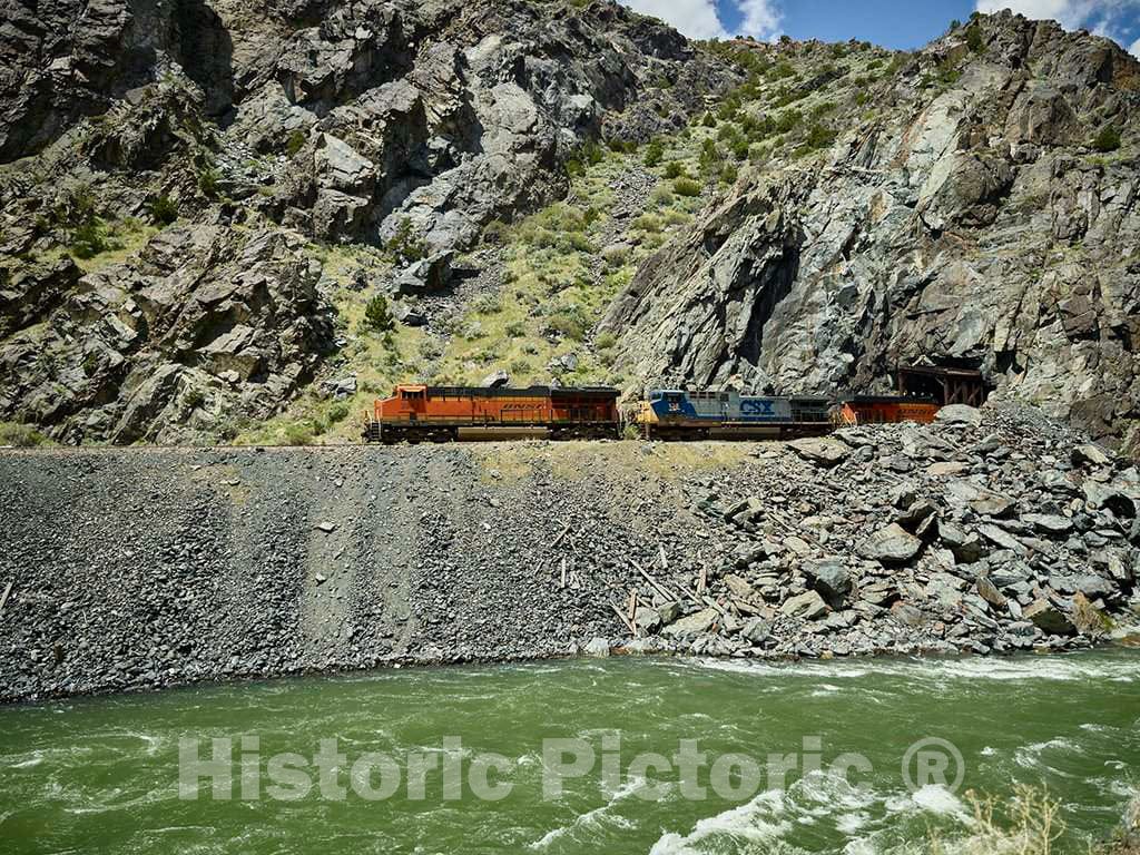Photo - A Freight Train emerges from a Tunnel in The Rocks of The Wind River Valley That Runs roughly from Shoshoni up to Thermopolis in North-Central Wyoming