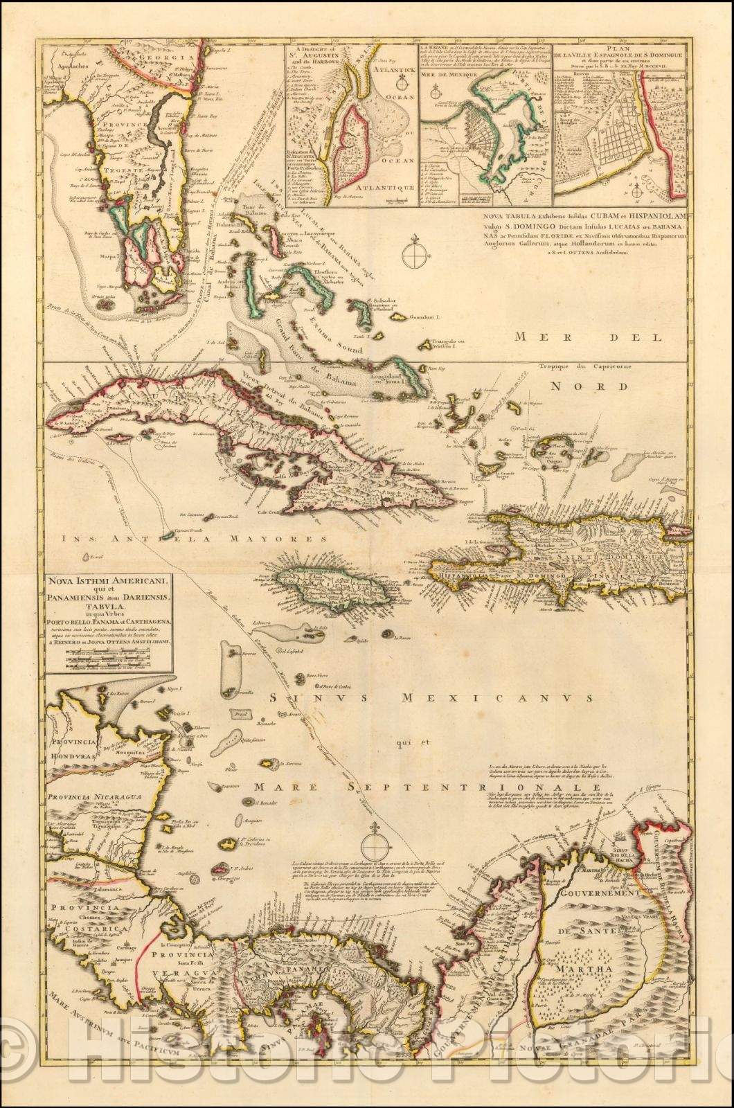 Historic Map - Nova Tabula Exhibens Insulas Cubam et Hispaniolam vulgo S. Domingo Dictam I :: Galeon Treasure Route Past Florida, Havana and Bahamas, 1740 - Vintage Wall Art