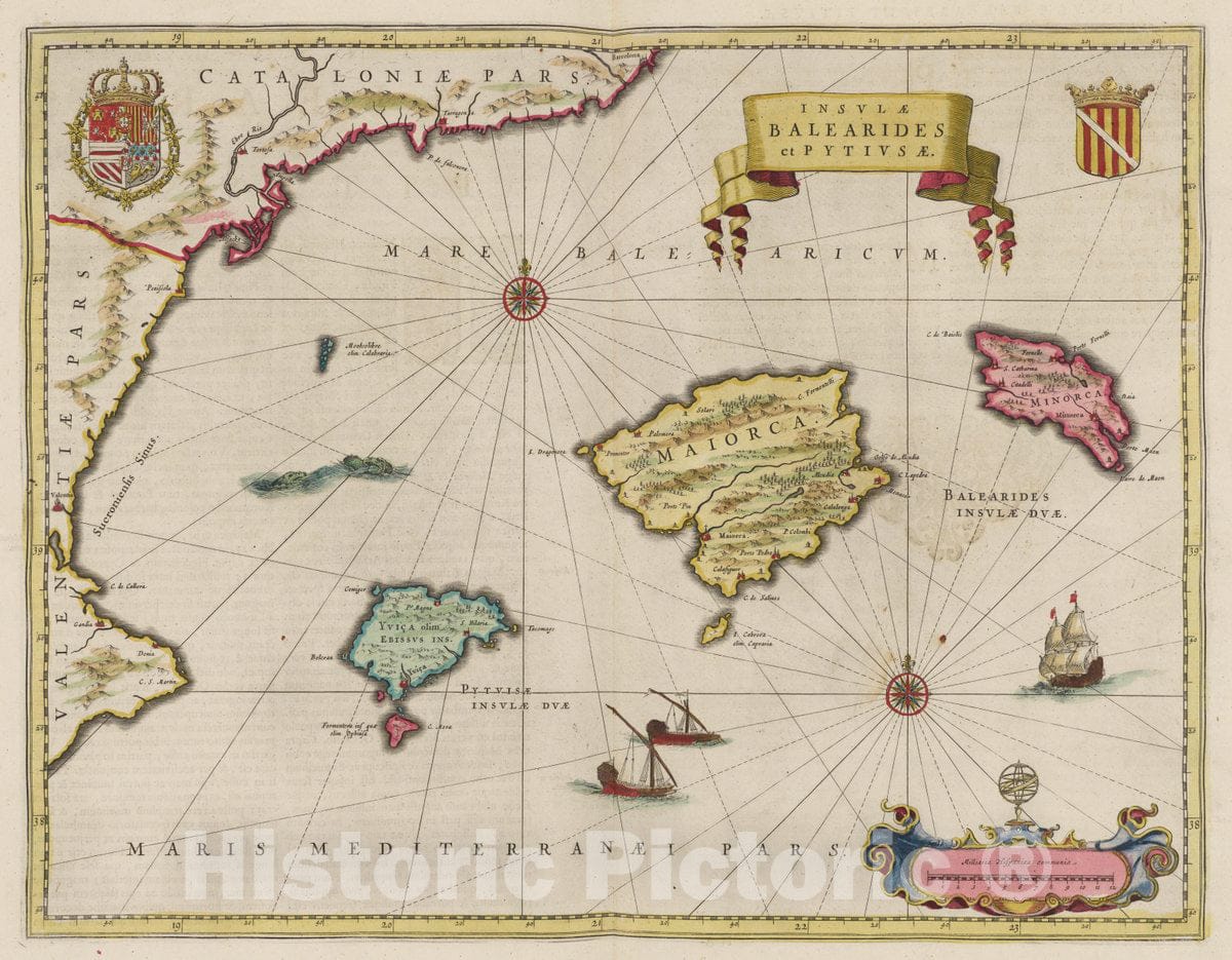 Spain, Balearic Islands , Spain Insvlae Balaerides et Pytiusae, 1665 Atlas , Vintage Wall Art