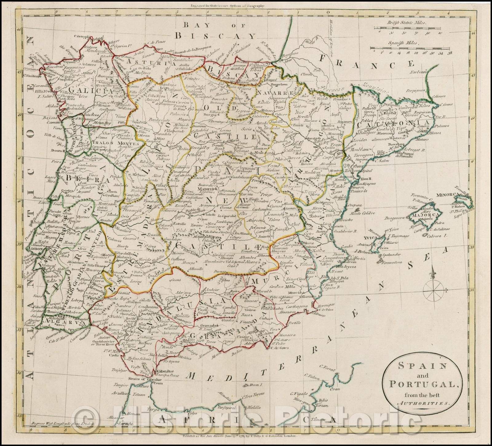 Historic Map - Spain and Portugal from the best Authorities (with the Balearic Islands), 1785, G. Robinson v1