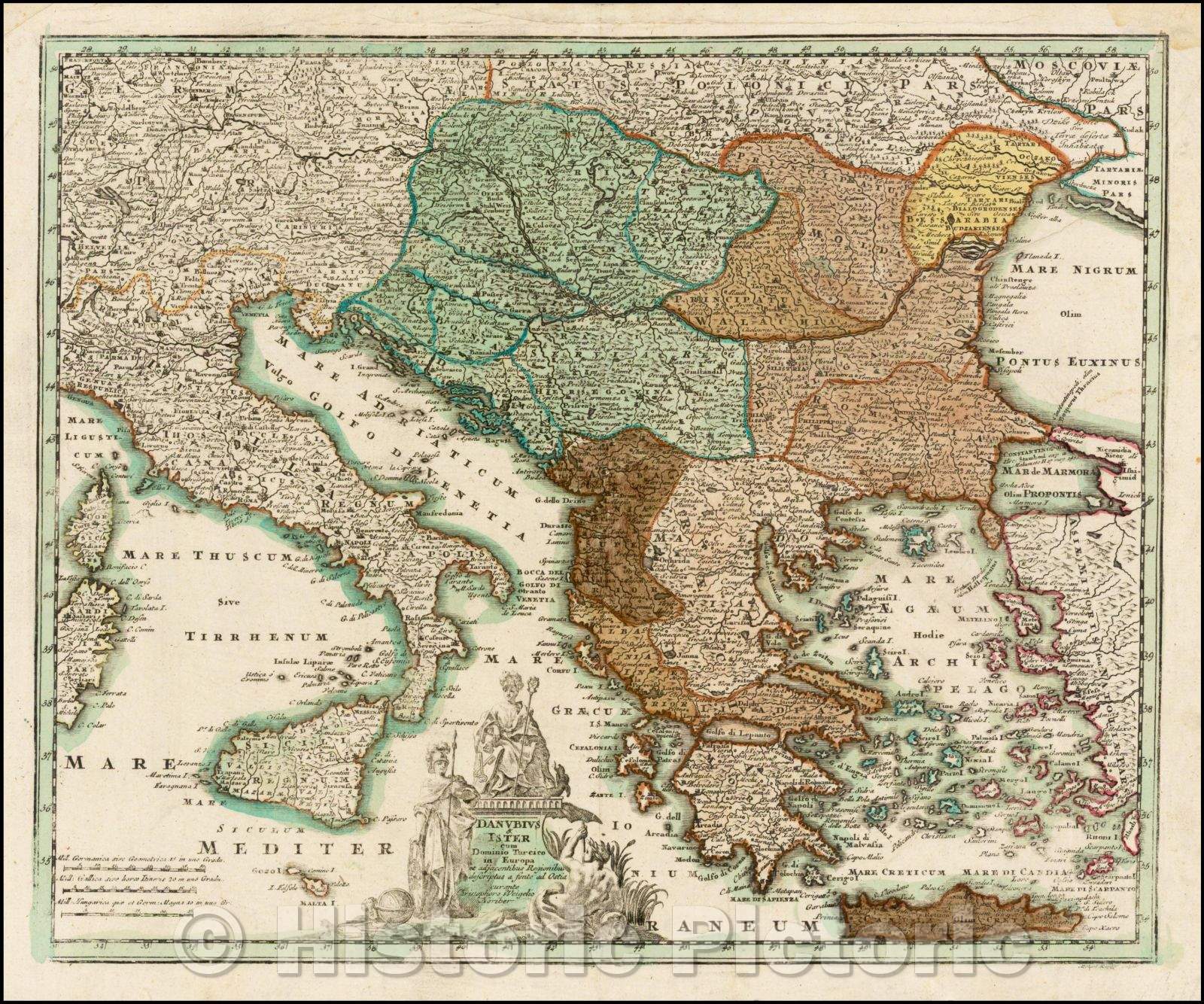 Historic Map - Danubius & Ister Domino Turcico Europa/Map of Adriatic, Eastern Mediterranean, Balkans, Turkey and Greece, 1720, Johann Christoph Weigel - Vintage Wall Art