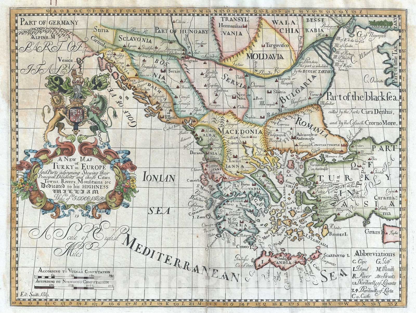 Historic Map : Greece, The Balkans, Macedonia and Turkey in Europe, Wells, 1712, Vintage Wall Art