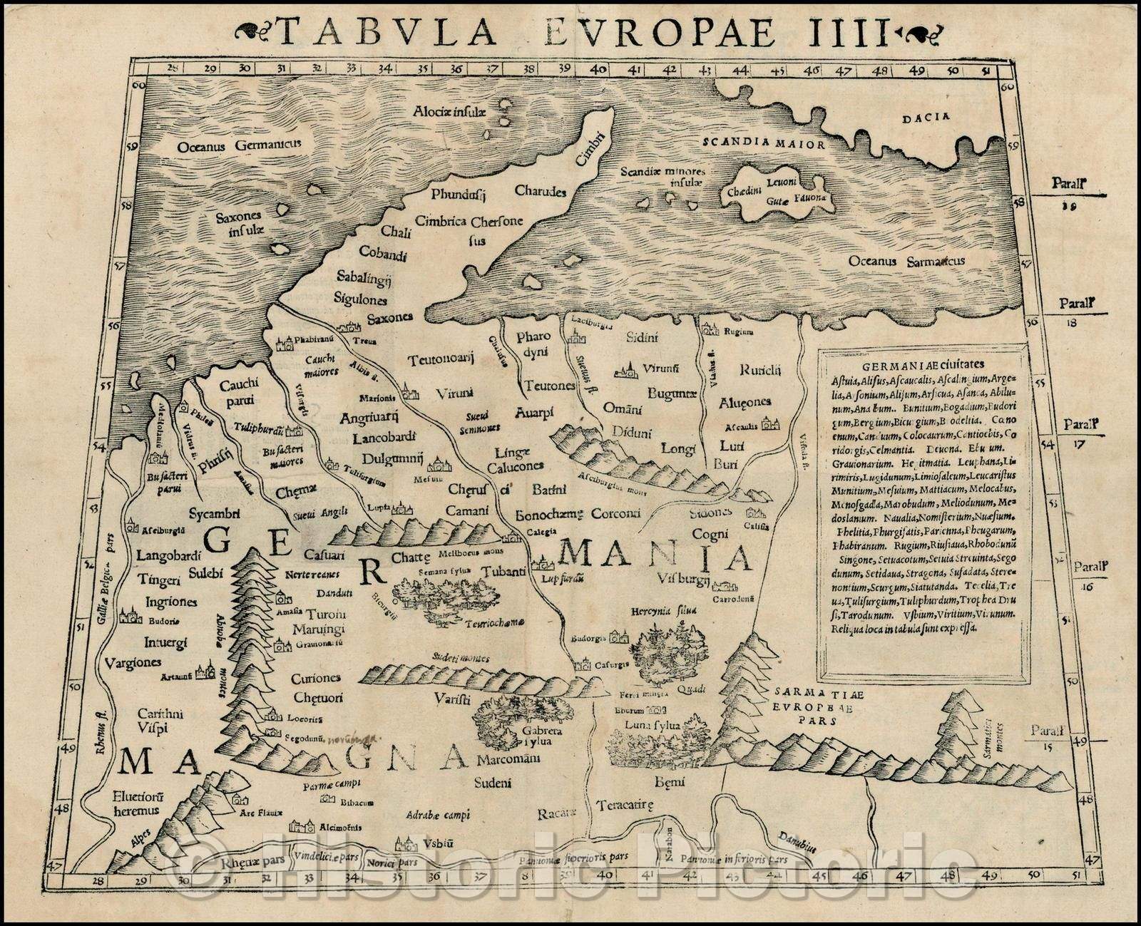 Historic Map - Tabula Europae IIII/Map of the German Empire, Baltic and part of the Balkans, extending to the Carpathian Mountains and the Danube, 1542 - Vintage Wall Art