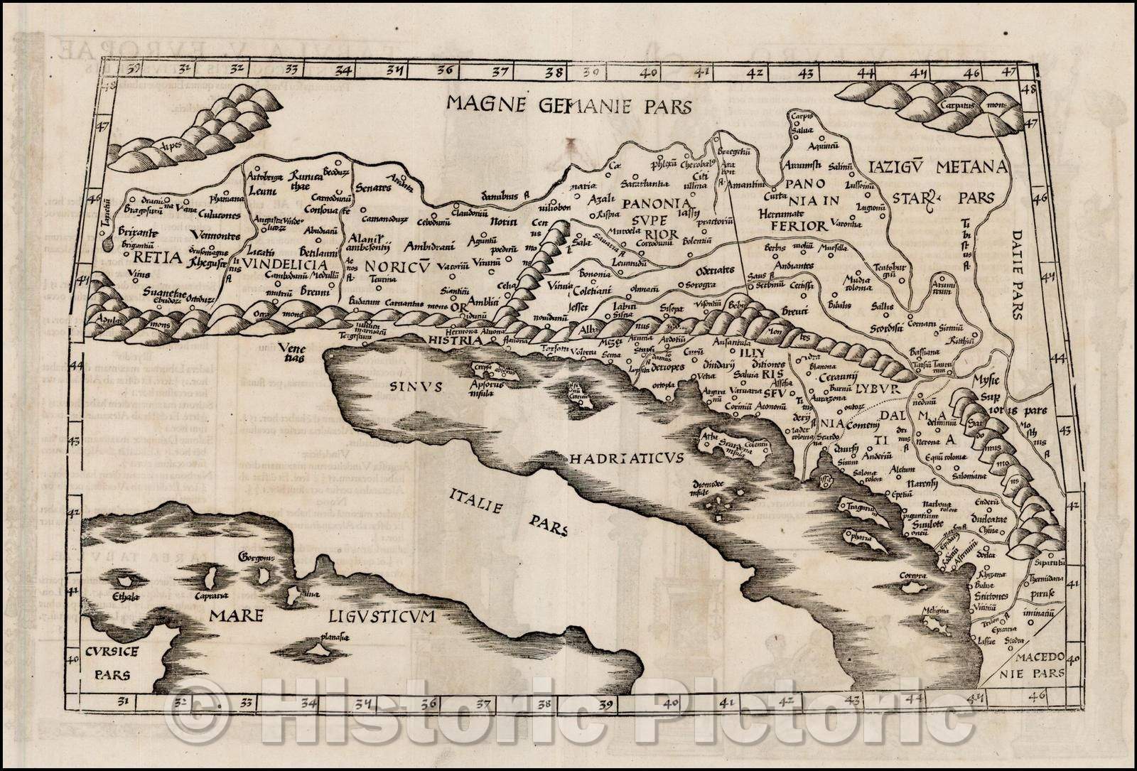 Historic Map - Tabula V Europae (Adriatic & Balkans - Title on Verso), 1535, Lorenz Fries - Vintage Wall Art